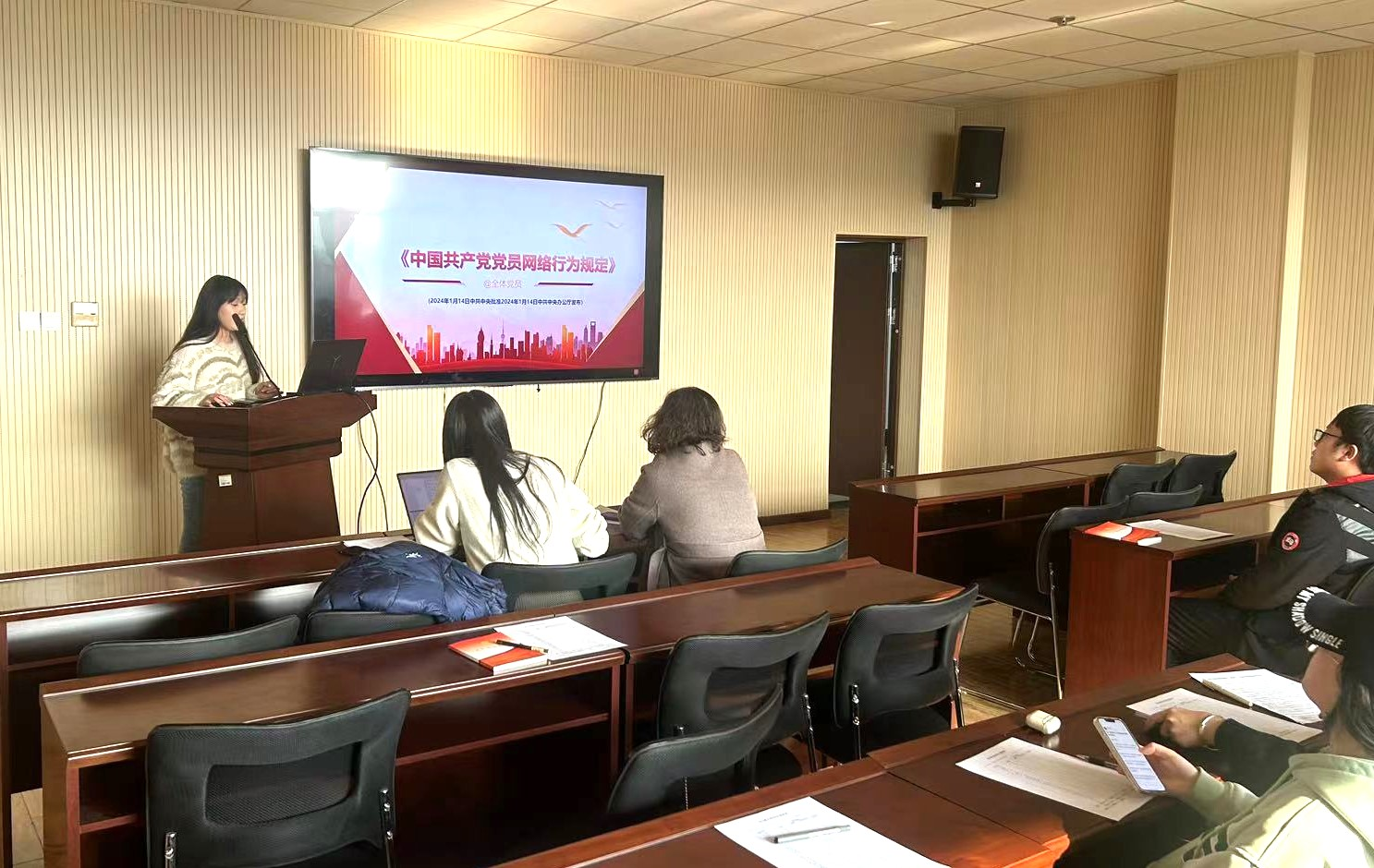 随后,李潇同志带领大家学习《中国共产党党员网络行为规定》。教育引导党员干部要提高政治站位,坚持正确政治方向,严格遵守党规党纪,自觉规范网络行为,旗帜鲜明、态度坚决地反对各种错误网络行为。