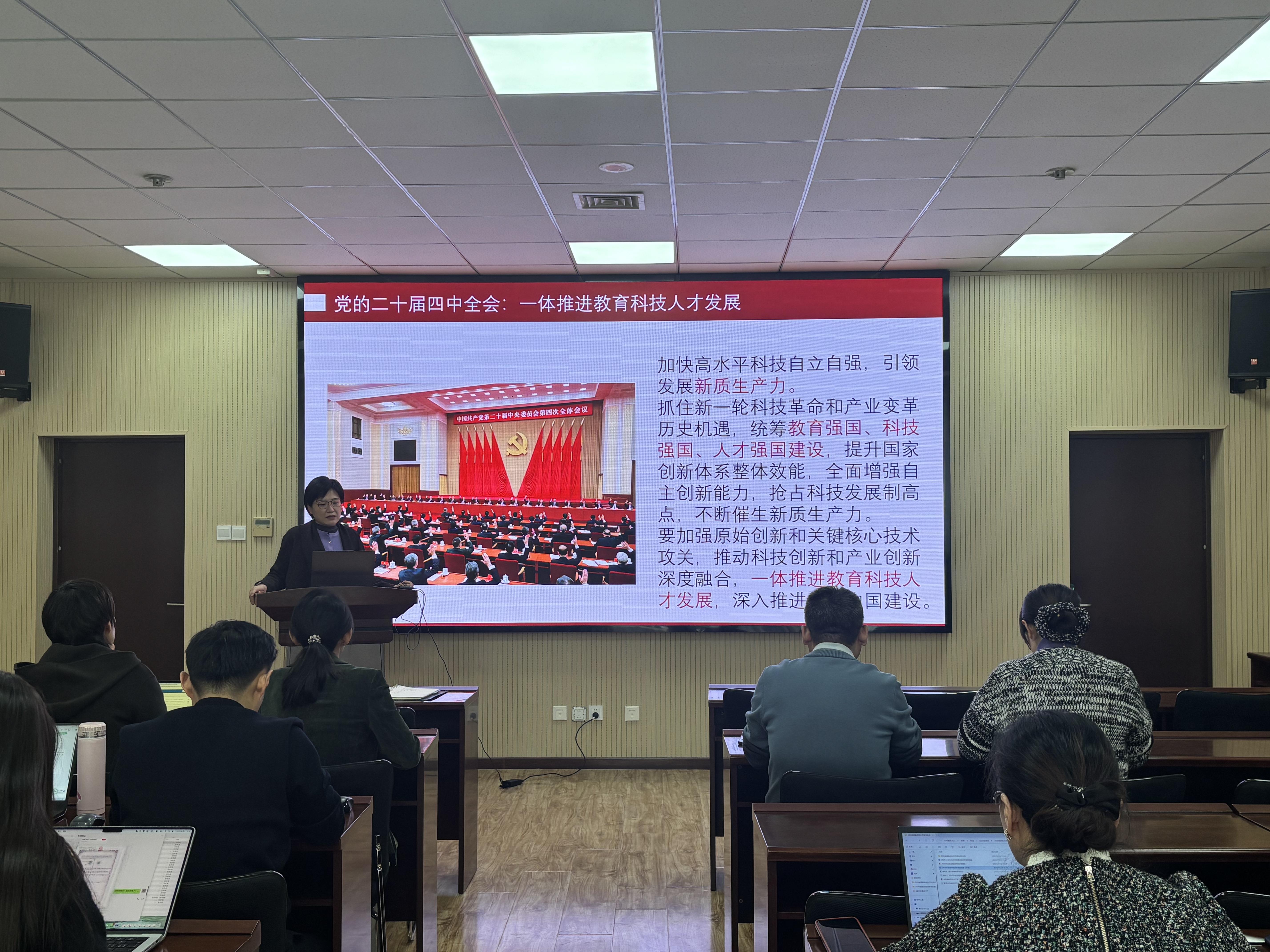 会上,张玉将全会精神学习与公司正在开展的课程思政专题培训深度融合,聚焦“为党育人、为国育才”的初心使命,深入阐释了课程思政建设的必要性和方法论。她引用“盐溶于汤”的生动比喻,明确价值引领应如盐之入味,自然融入专业知识传授全过程,实现“润物无声”的育人效果。全体教师要深刻把握教育的政治属性、人民属性和战略属性,深挖各类课程中蕴含的思想政治教育资源,找准专业教学与价值引领的契合点,做到适时、适量、适度地融入,实现知识传授、能力培养与价值塑造的有机统一,切实提升育人实效。