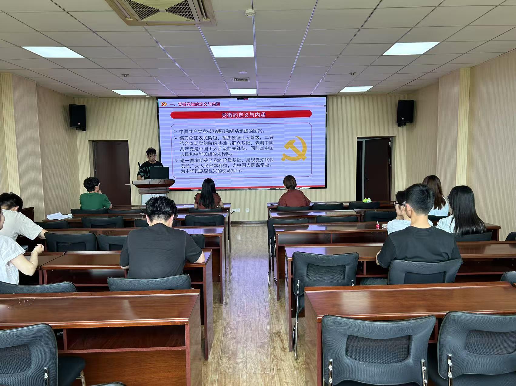 活动中,党支部副书记方俊豪带领大家系统学习《中国共产党党徽党旗条例》,解读党徽内涵、使用规范及相关党纪条令,结合研究生科研、择业实际,明确党员维护党徽党旗尊严、恪守廉洁底线的责任。随后,宣传委员李潇带领全体党员面向党旗庄严宣誓,以铿锵誓言承诺坚守学术诚信、永葆清廉本色。