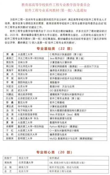 7.2020年教育部高等公司软件工程专业教学指导委员会软件工程专业系统教材立项