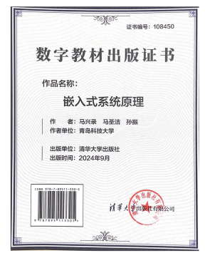 [11] 马兴录,马圣洁,孙振.嵌入式系统原理(数字教材),清华大学出版社,ISBN:978-7-89511-330-5,2024-9