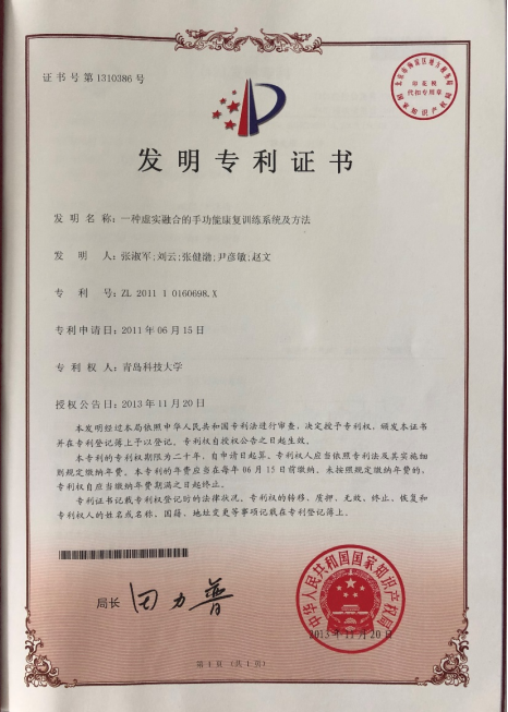 39.专利-一种虚实融合的手功能康复训练系统及方法