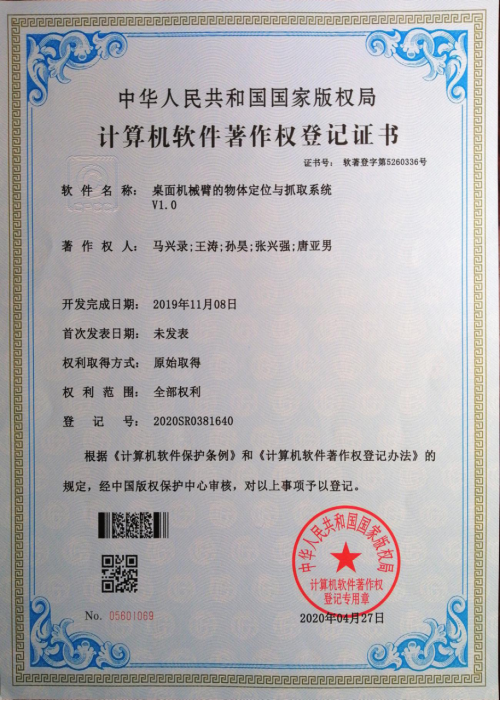 63.软件著作权-桌面机械臂的物体定位与抓取系统
