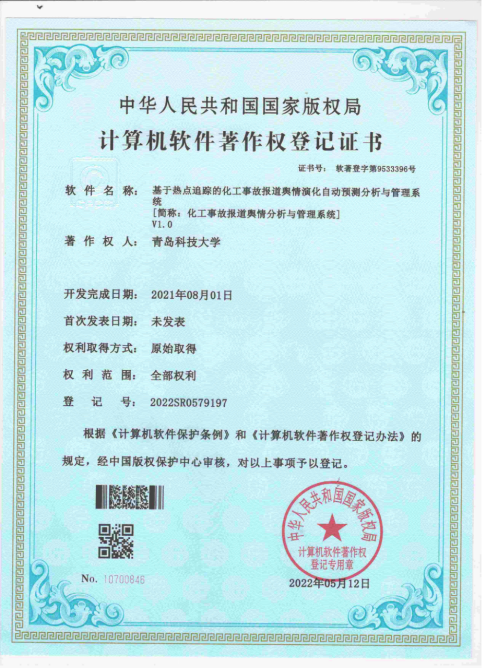 59.软件著作权-基于热点追踪的化工事故报道舆情演化自动预测分析与管理系统