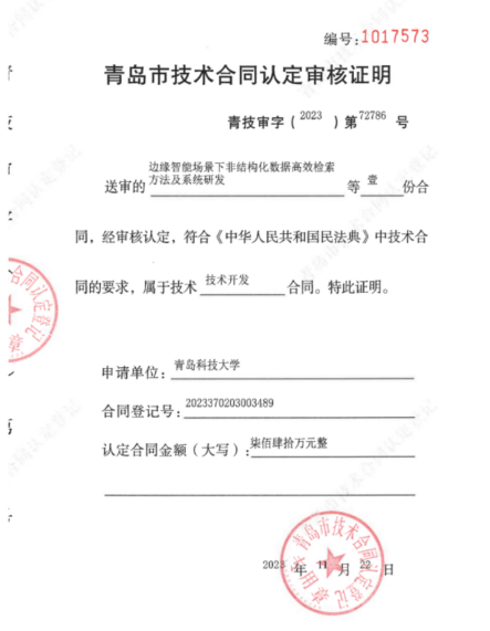 2.2023年横向课题负责人杜军威,金额740万,“边缘智能场景下非结构化数据高效检索方法及系统研发”