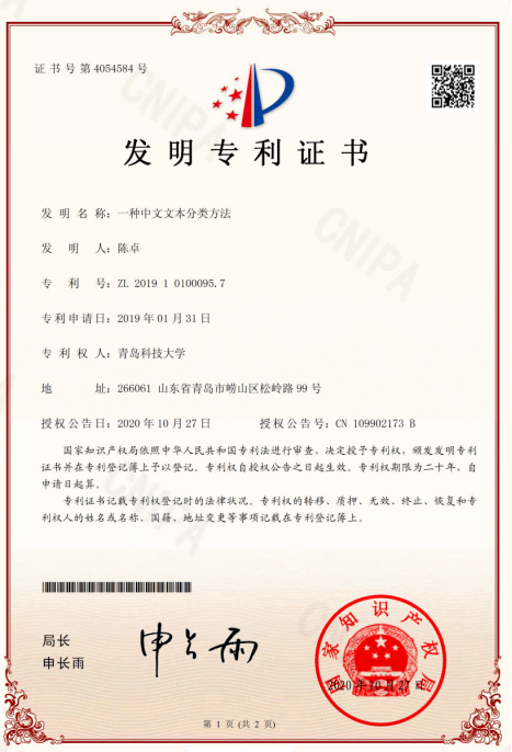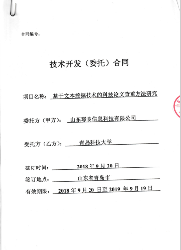 10.2018年横向课题负责人杜军威,金额41.5万,基于文本挖掘技术的科技论文查重方法研究