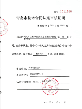 8.2021年横向课题负责人孙振,金额50万,通过AI技术实现密炼工艺参数生产曲线标准化