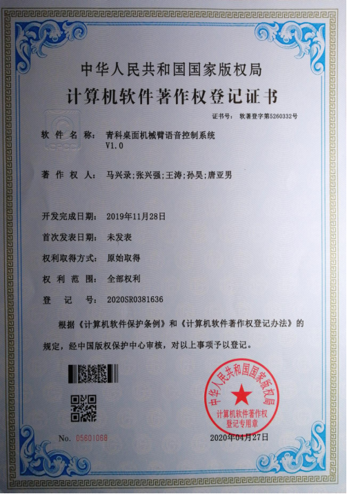 64.软件著作权-青科桌面机械臂语音控制系统