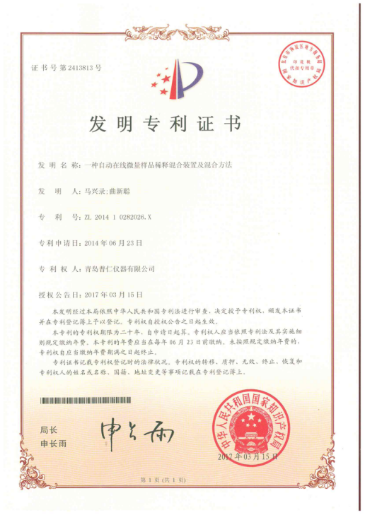 48.专利-一种自动在线微量样品稀释混合装置及混合方法