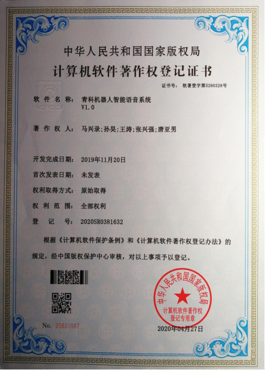 65.软件著作权-青科机器人智能语音系统