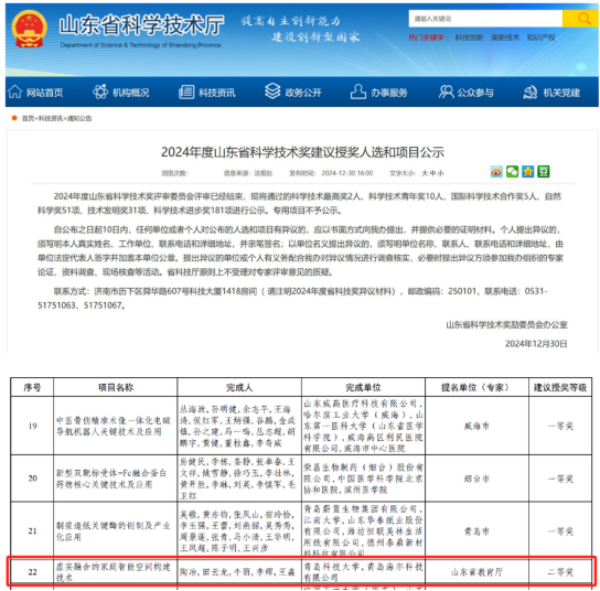 12.2024年山东省科学技术二等奖