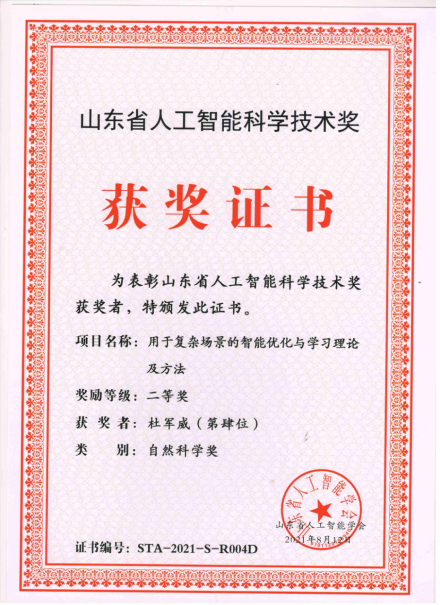 18.2021年度山东省人工智能科学技术奖二等奖-用于复杂场景的智能优化与学习理论与方法
