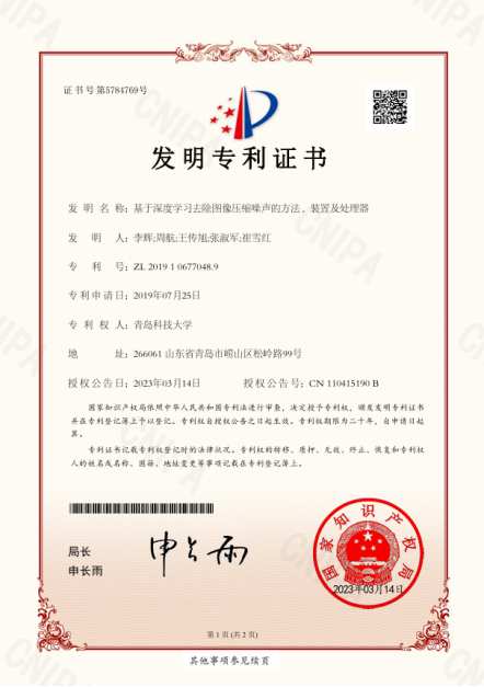 45.专利-基于深度学习去除图像压缩噪声的方法、装置及处理器