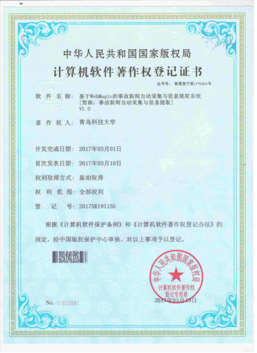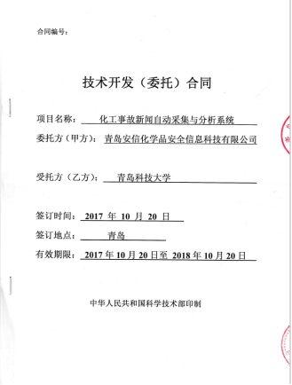 11.2017年横向课题负责人杜军威,金额26万,化工事故新闻自动采集与分析系统