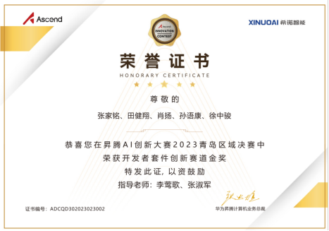 54.2023年晟腾AI创新大赛“开发者套件创新赛道”青岛区域决赛金奖