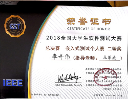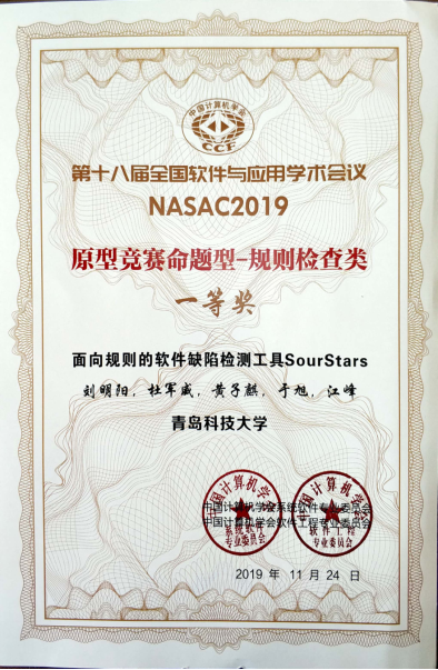 2.2019年全国软件与应用学术会议NASAC2019一等奖