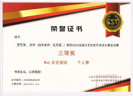 22.2020年全国老员工软件测试大赛总决赛三等奖