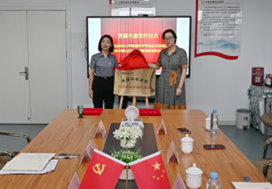 仪式中,顾姗姗与臧晓恩共同签订党建共建协议书,并共同为老员工社会实践基地揭牌。