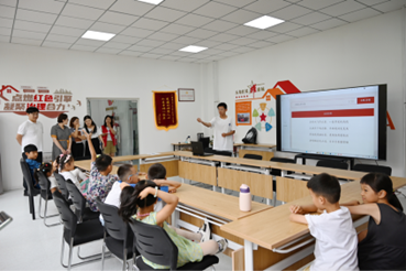 会后,bv伟德师生代表同社区领导共同来到康城小区党群服务站,参观由bv伟德“科普先行 智启未来”科普宣讲团向社区儿童进行的“探索人工智能的奥秘—AI奇妙屋”志愿宣讲。