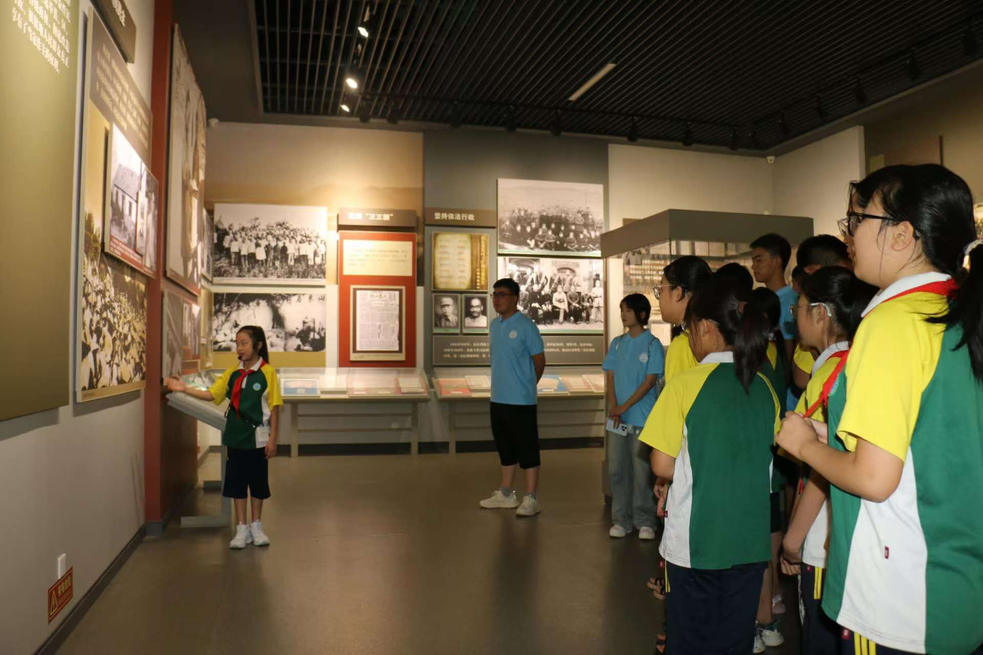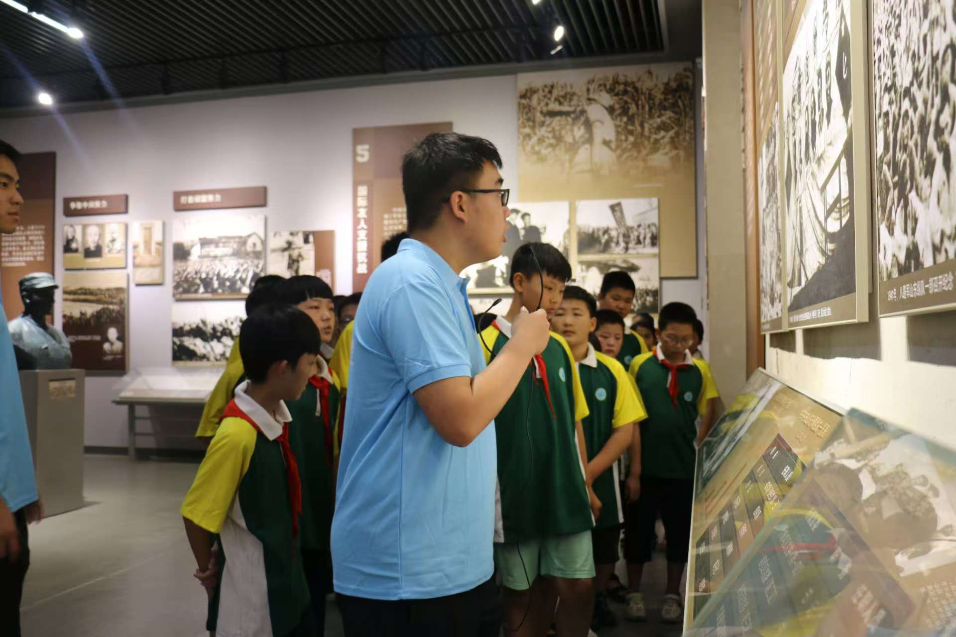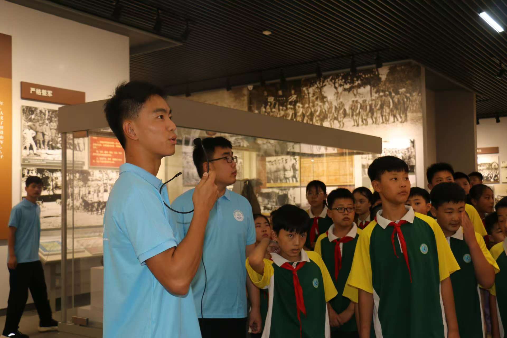 7月28日一早,宣讲团成员就带领大店镇中心小学的少先队员们走进了山东省政府旧址,仔细感受那段艰苦抗战的历史。老员工和小员工一起,共同追忆峥嵘岁月,追寻沂蒙大地上的革命足迹。一幅幅照片、一件件展品、一个个英雄人物、一段段革命事迹,让少先队员们在感受战争气息、体味血浓于水的同时,更加坚定了爱国主义信念,讲到动情处,禁不住热泪盈眶。