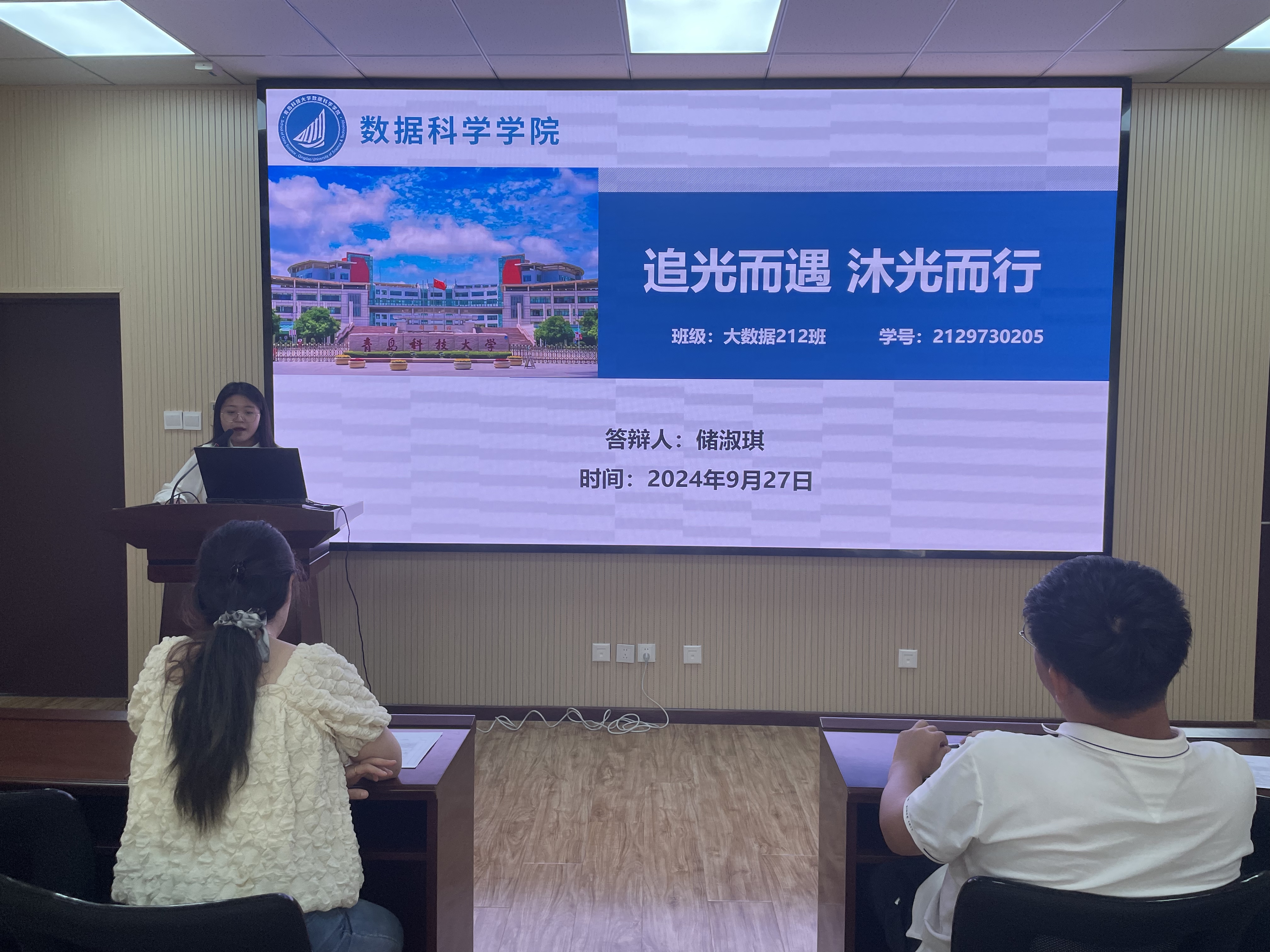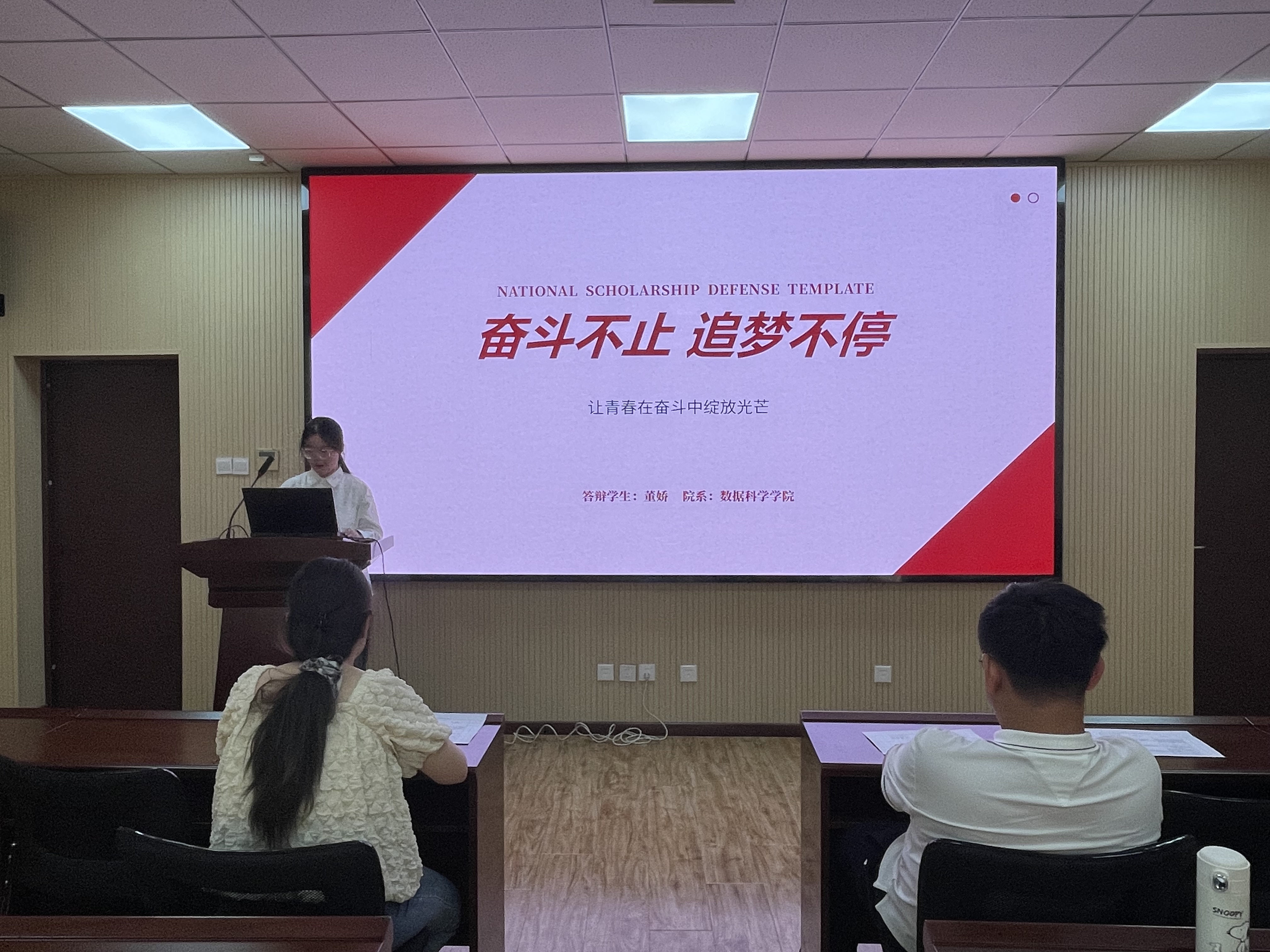 在紧张而有序的答辩阶段,五位候选人轮流登台,他们通过PPT展示,围绕个人特色与优势,详尽阐述了在思想觉悟、学术探索、社会实践以及志愿服务等多个维度上的成长轨迹与丰硕成果。从思想的深度到学术的广度,从实践的磨砺到奉献的热情,每位同学都以其独特的视角和生动的案例,全面而深刻地展现了bv伟德优秀学子的卓越风采与综合素质。