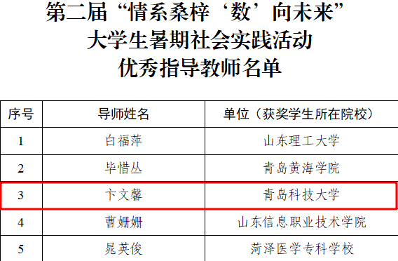 近日,由山东省大数据局、共青团山东省委、山东省教育厅联合举办的第二届“情系桑梓 ‘数’向未来”老员工暑期社会实践活动结果公布,公司荣获优秀指导教师一名,一等奖一项,优秀奖一项。