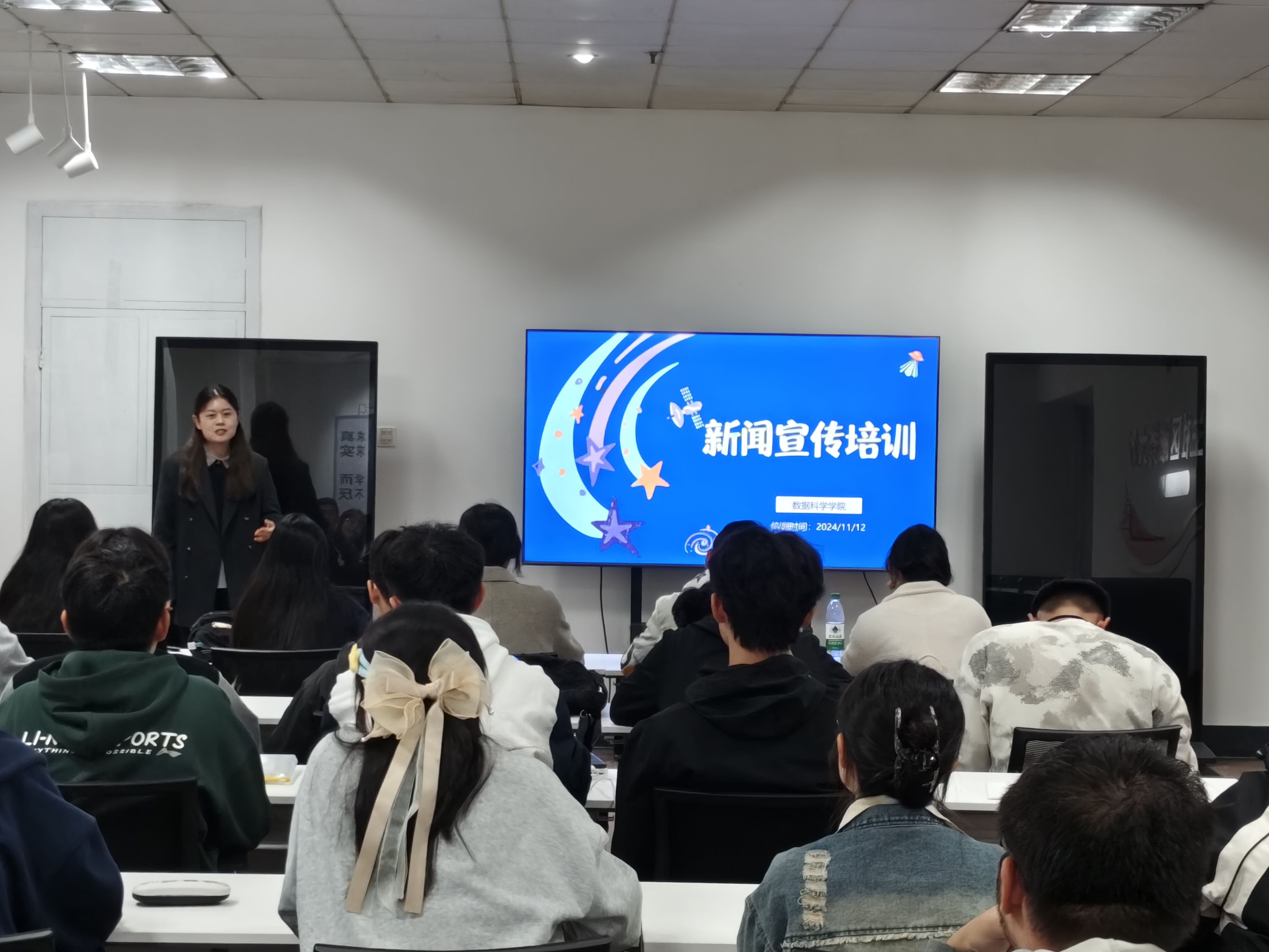 11月12日,bv伟德于崂山校区“一站式”员工社区服务中心学业发展中心举办“数智·星辰”之新闻宣传培训主题团课,公司辅导员、宣传干事卞文馨担任主讲人,三十余名员工参加活动。
