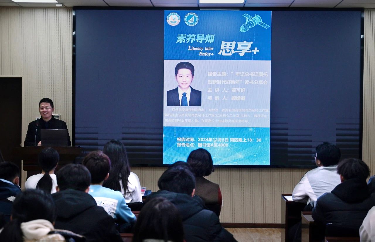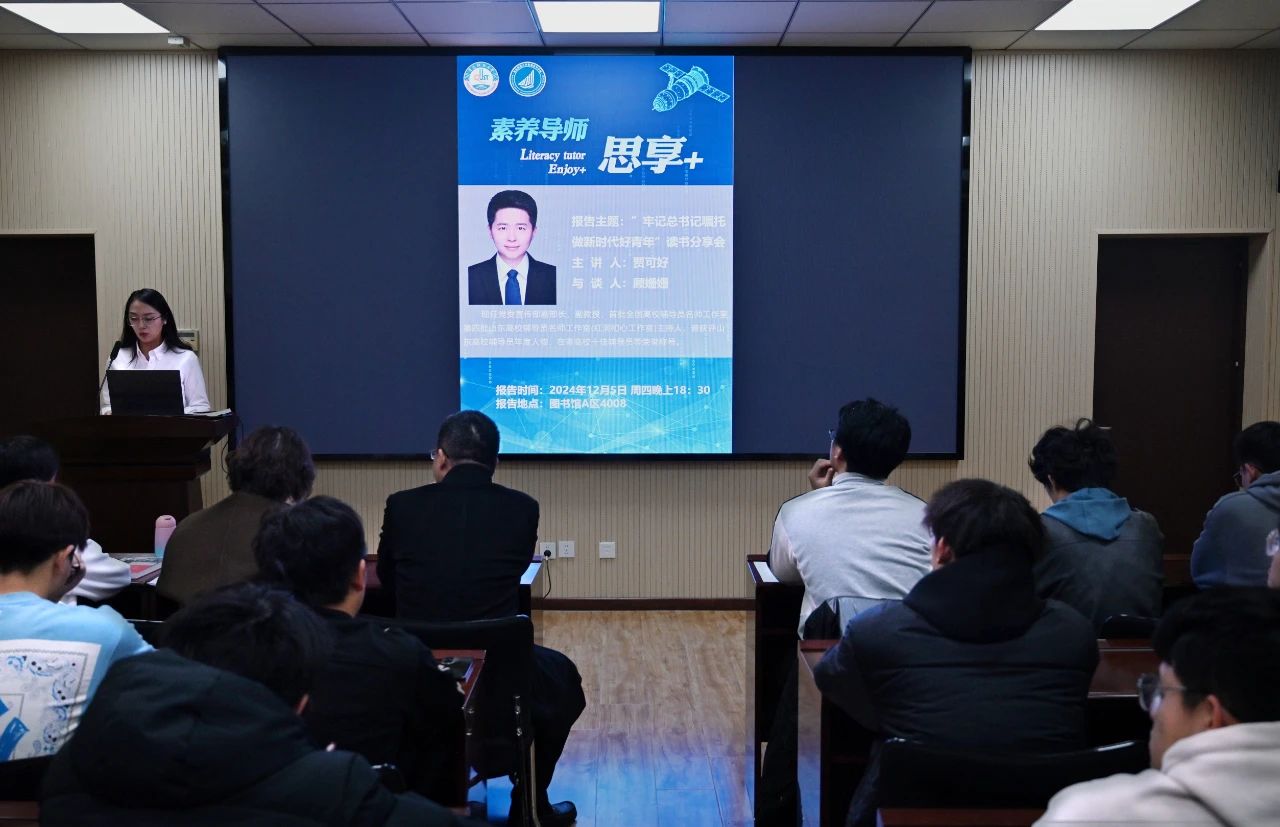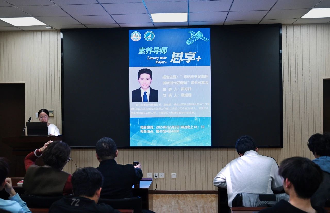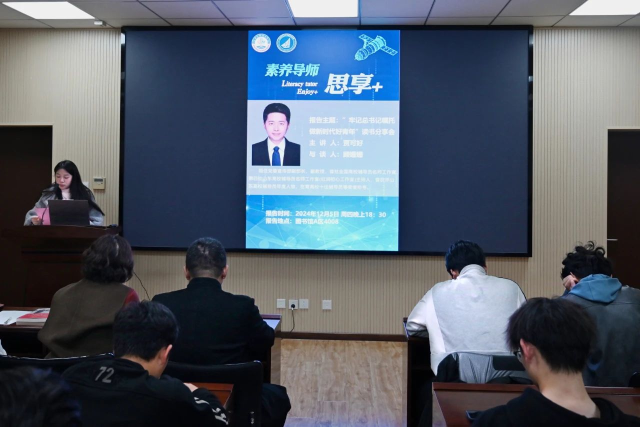12月5日晚上,bv伟德在公司楼4008会议室顺利开展了“素养导师思享+”第九期素养课程——“牢记总书记嘱托做新时代好青年”读书分享会。此次课程邀请到公司党委宣传部副部长、副教授贾可好担任主讲嘉宾,马克思主义专业研究生朱彦祯、艺术公司本科生王莉汶作为分享嘉宾,公司2023级和2024级部分本科生参与此次分享会。