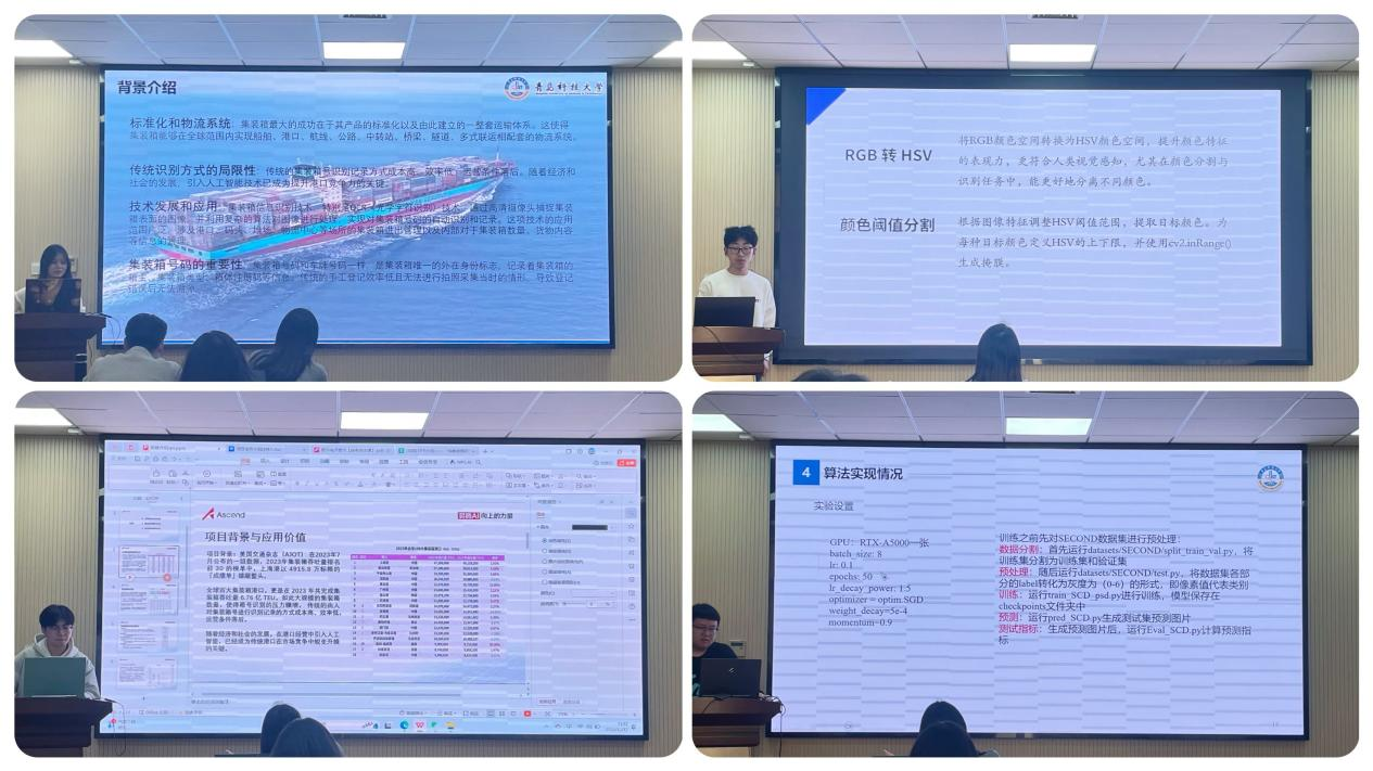 在答辩现场,各参赛团队依次上台,通过PPT展示和现场讲解的方式,向评委们全面介绍了项目的背景、技术路线、创新点、应用前景以及团队构成等关键信息。答辩过程中,评委们认真听取每个项目的汇报,并针对项目的技术可行性、创新性、实用性等方面进行了深入提问和点评。参赛团队也积极回应评委的提问,就相关问题进行了解释和说明。