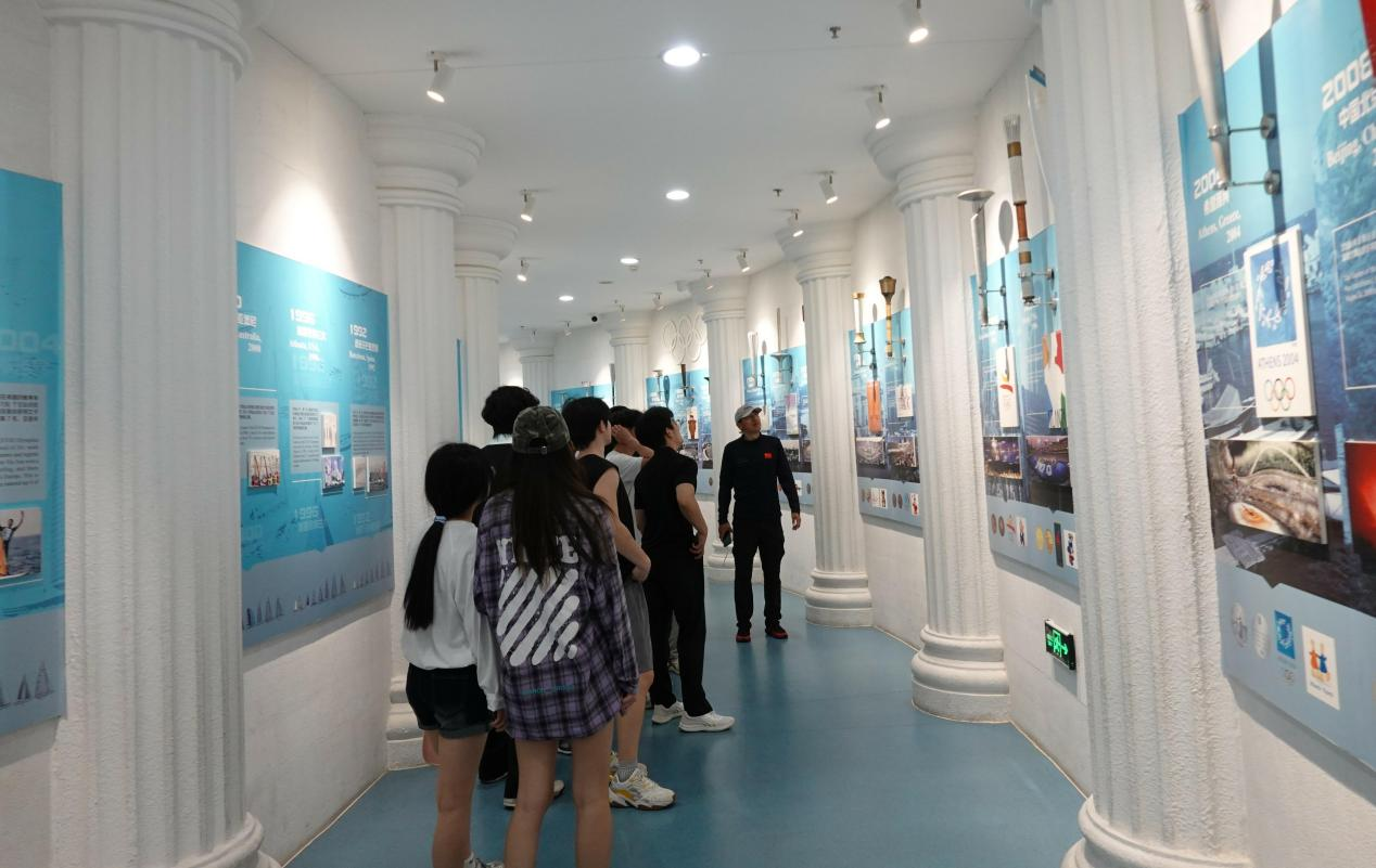 登上帆船后,“海上实践课”正式拉开帷幕。航行过程中,教练结合实际操作,深入解析风力驱动帆船的原理,并指导同学们感受风与帆的动态配合。同学们亲手调整帆具,在海浪起伏间,将理论知识转化为实践技能,切身体会“知行合一”的素养提升。实践结束后,同学们走进奥帆博物馆,开启“文化素养研习”之旅。馆内,2008年奥运会参赛帆船、帆船历史长廊等展品,生动展现了帆船运动的发展脉络。大家积极参与“航海知识问答”“模拟帆船驾驶”等互动活动,在奥运领奖台打卡留念,沉浸式感悟奥运文化与航海精神的交融,进一步滋养了文化素养根基。