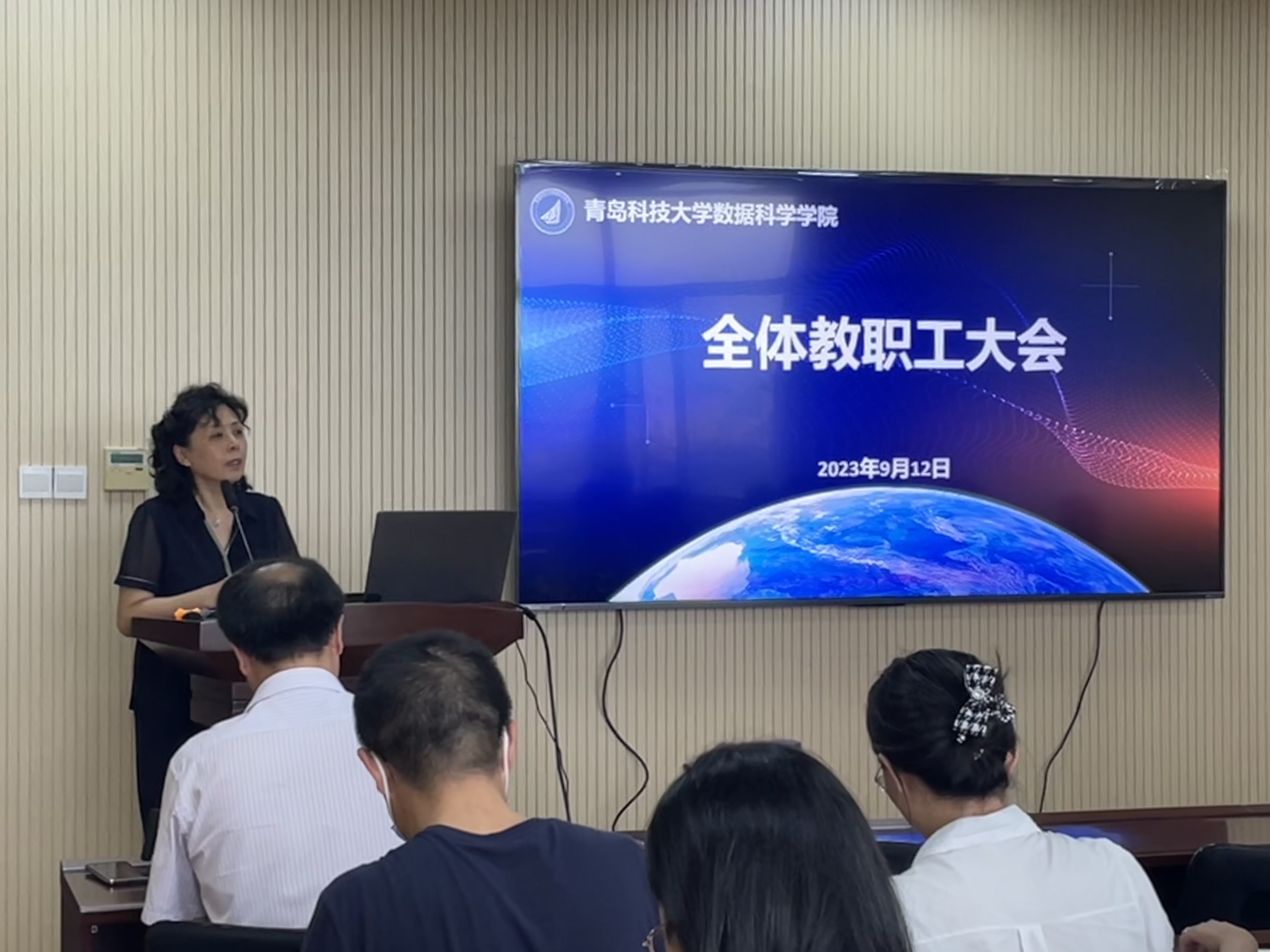 9月12日下午,bv伟德在图书馆A区4008召开全体教职工大会。党总支书记官杰主持会议。