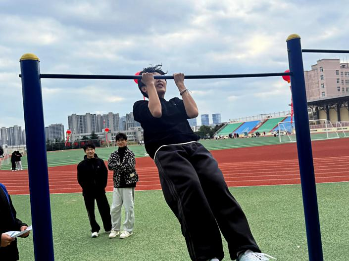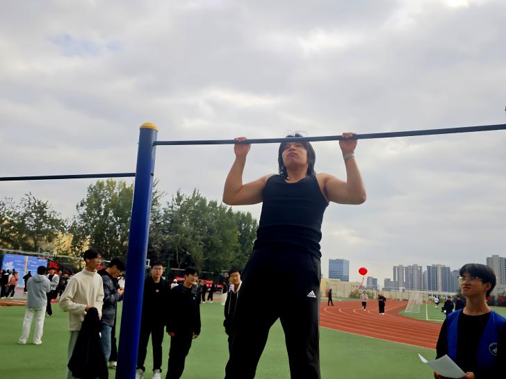 引体向上项目现场,参赛员工身姿挺拔、蓄势待发。比赛启动后,参赛员工全力向上攀升,手臂青筋显露,肌肉线条在阳光下清晰可见,尽显坚毅姿态。每一次动作均伴随沉稳呼吸,既展现力量较量,更凸显青春不服输的韧劲。最终,人工智能 232 班王建涛以 20 个的成绩,荣获该项目冠军。