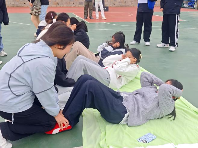 仰卧起坐区域气氛热烈,参赛员工以两人为一组开展比拼:一人平躺发力完成动作,另一人按住其脚踝协助计数。员工们腰背交替收缩舒展,汗水滑落草坪,部分参赛员工凭同伴鼓励突破体力极限,充分彰显拼搏精神。人工智能 253 班李梓涵表现突出,以 50 个的成绩斩获该项目冠军。