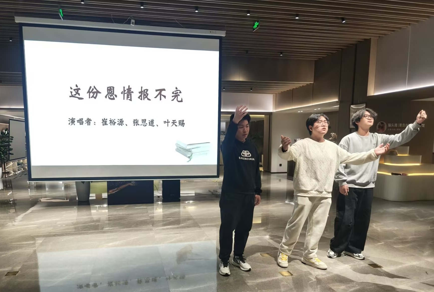 分享环节后,艺术公司叶天赐、崔裕源、张恩道登台演唱《松花江上》《再看一眼亲人》《这份恩情报不完》,深情的演唱为活动增添了浓厚情感氛围。