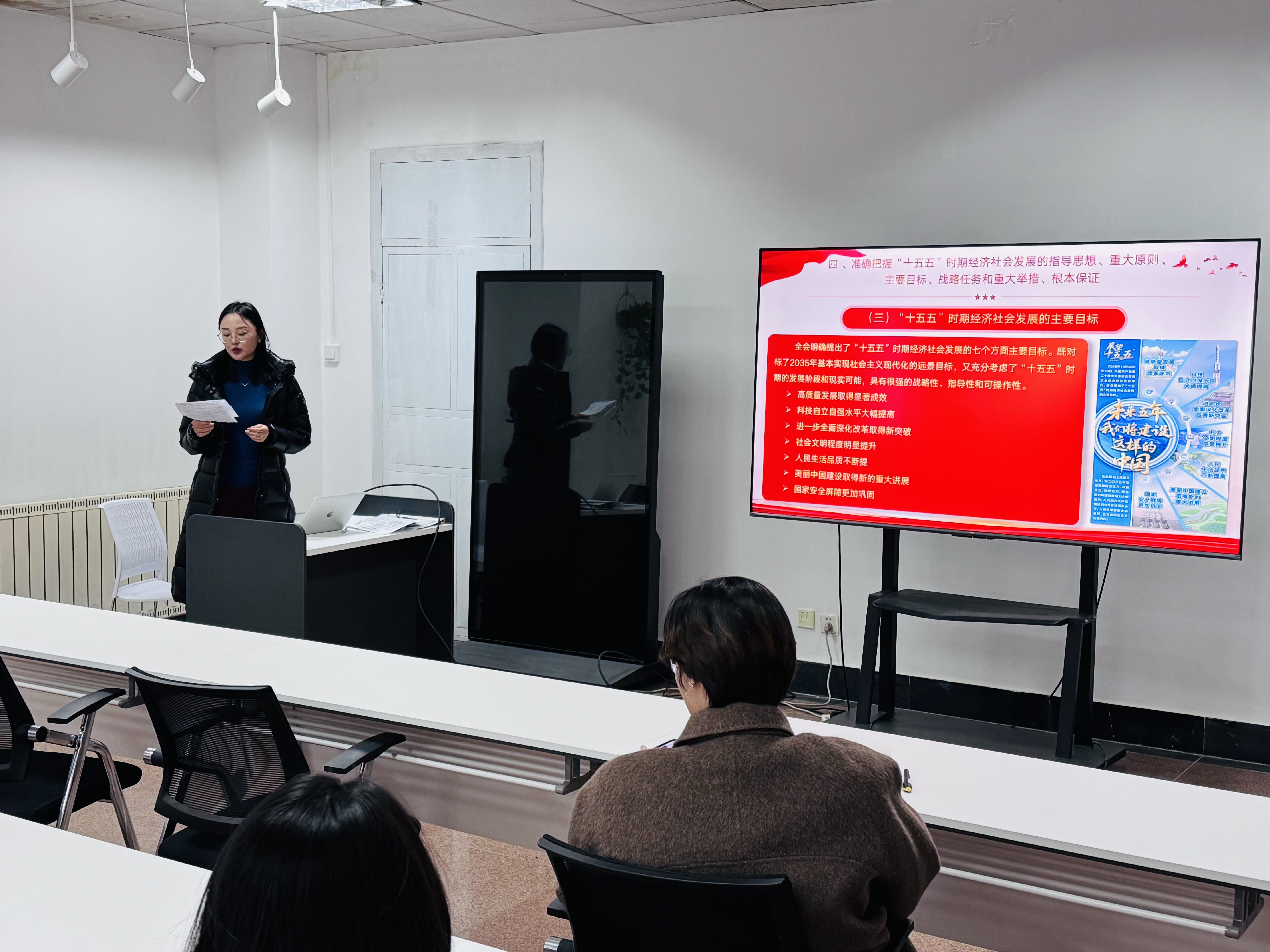 为深入学习贯彻党的二十届四中全会精神,引导青年学子准确把握全会核心要义与时代内涵,12月17日,bv伟德在崂山校区“一站式”员工服务中心社团活动室开展“党的二十届四中全会精神专题宣讲”活动。党委副书记兼副经理顾姗姗出席,孙媛媛老师主讲,全体青马工程培训班学员参加。