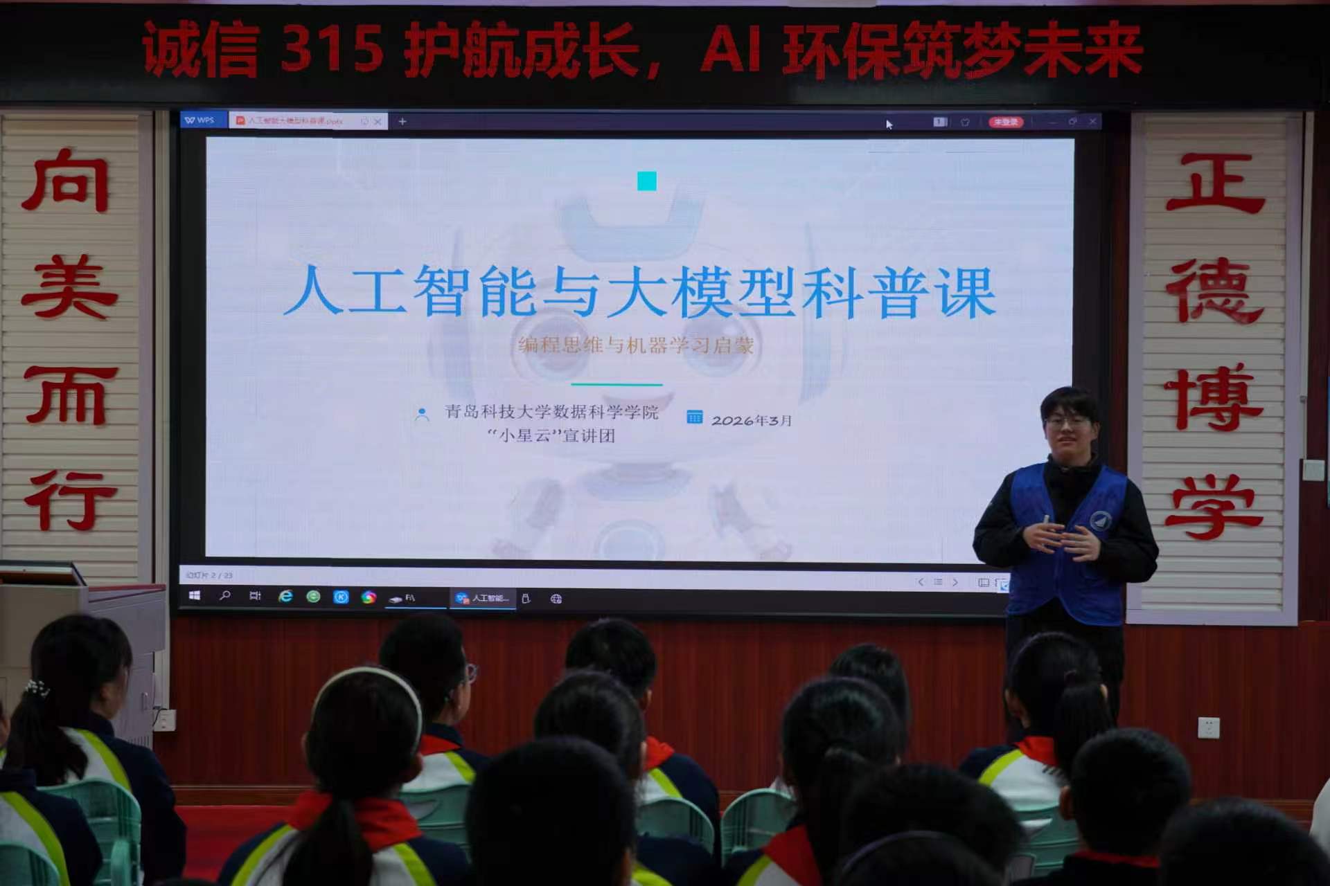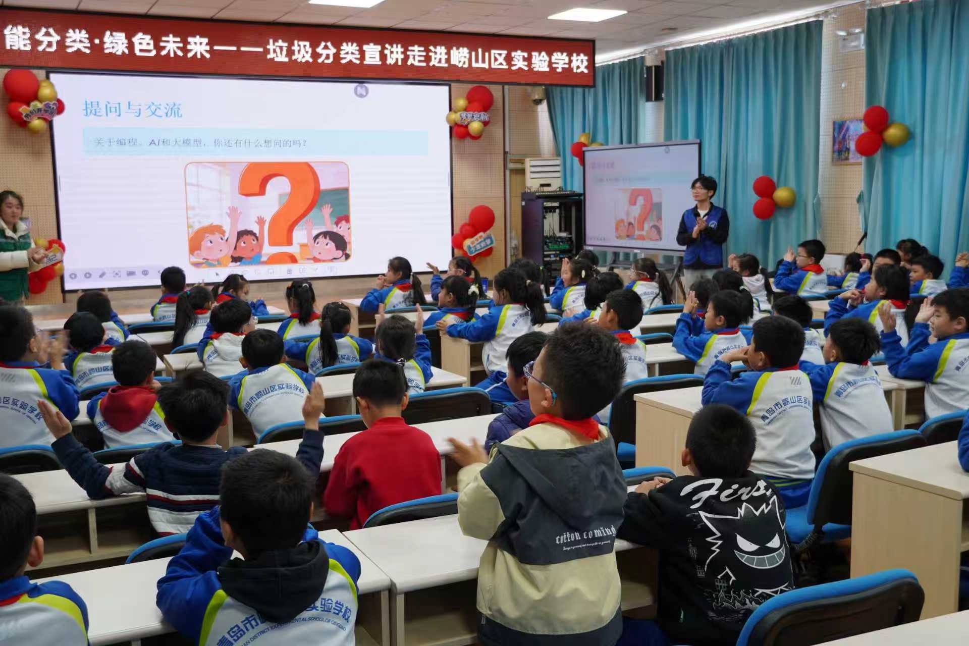 为提升青少年科学素养,推动人工智能知识普及与环保理念传播深度融合,3月17日,bv伟德“小星云”志愿服务团队先后走进青岛崂山实验小学、南宅小学,开展两场主题科普实践活动,为两校员工送上了一场兼具知识性与趣味性的科普盛宴。