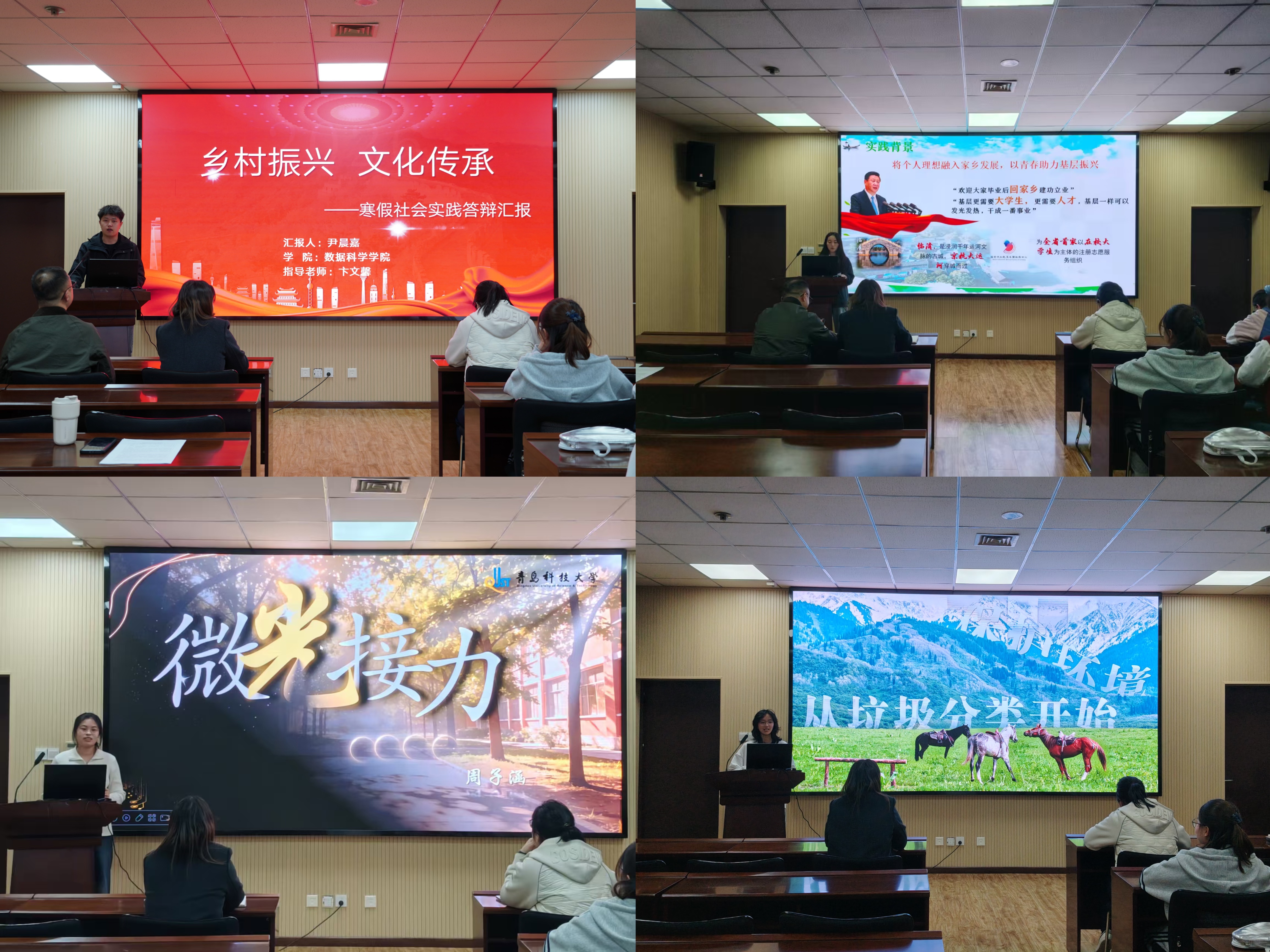 分享会上,同学们依次登台,结合PPT生动呈现了各自团队的实践历程与丰硕成果。有的同学积极投身基层服务,深入基层一线开展实践调研与志愿服务;有的同学参与暖冬关爱行动,为孤困儿童送去温暖与陪伴;还有的同学在春运期间前往火车站,协助开展引导咨询、秩序维护等志愿服务,用实际行动践行责任与担当。大家围绕实践中的挑战与突破、收获与成长展开交流,现场氛围热烈,掌声不断。通过分享,同学们不仅展现了扎实的专业能力,更传递出勇于实践、乐于奉献的青春风采。