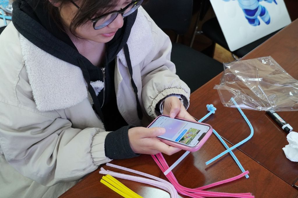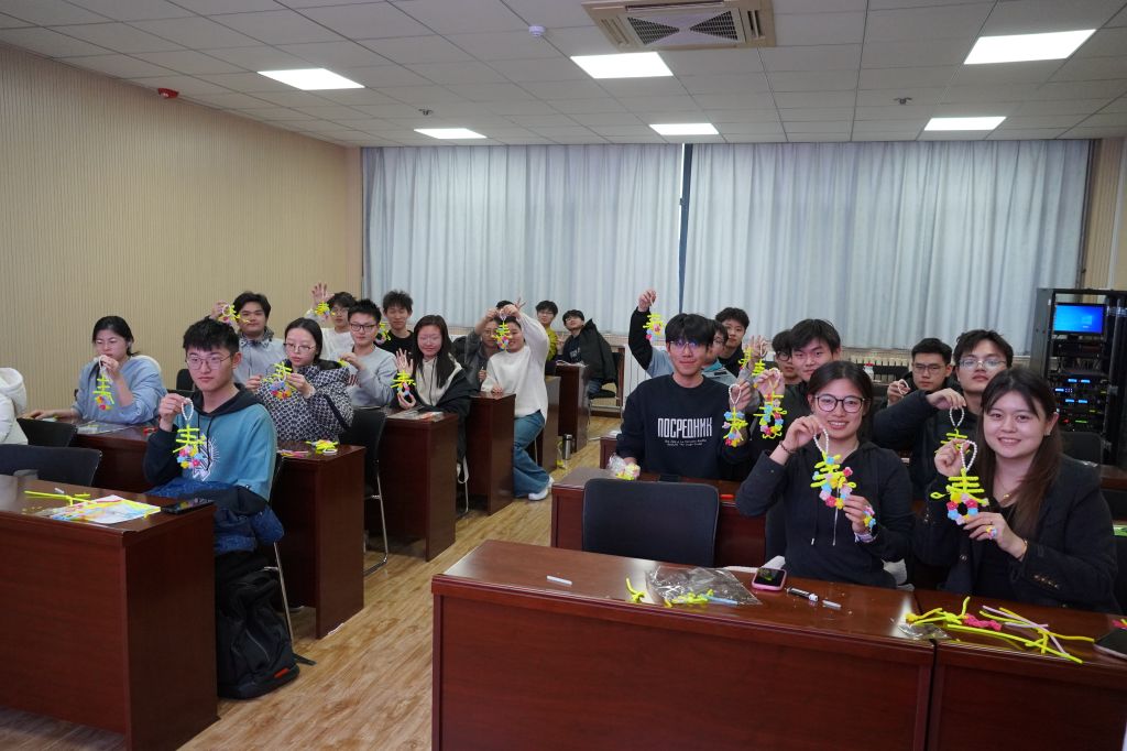 活动伊始,工作人员围绕扭扭棒花环制作技巧展开细致讲解,通过现场示范、步骤拆解等方式,耐心解答同学们提出的各类疑问,引导大家沉浸式感受手工创作的乐趣。活动过程中,同学们专注投入、相互交流探讨,在动手实践中舒缓压力、放松身心。