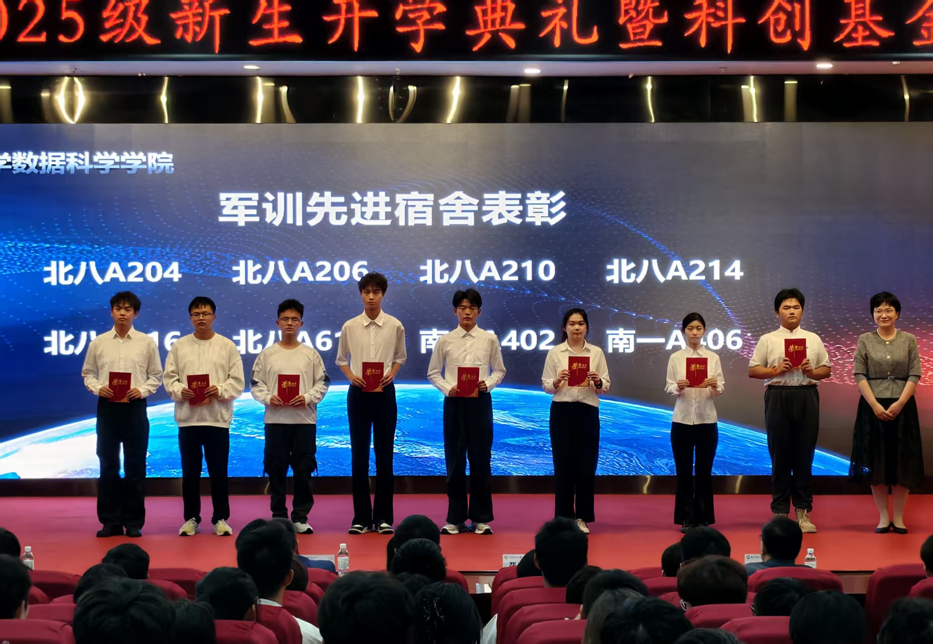 随后举行2025级新生军训先进宿舍表彰仪式,公司党总支书记张玉为获奖宿舍代表颁发荣誉证书,表彰其在军训期间展现的优良作风与集体凝聚力。