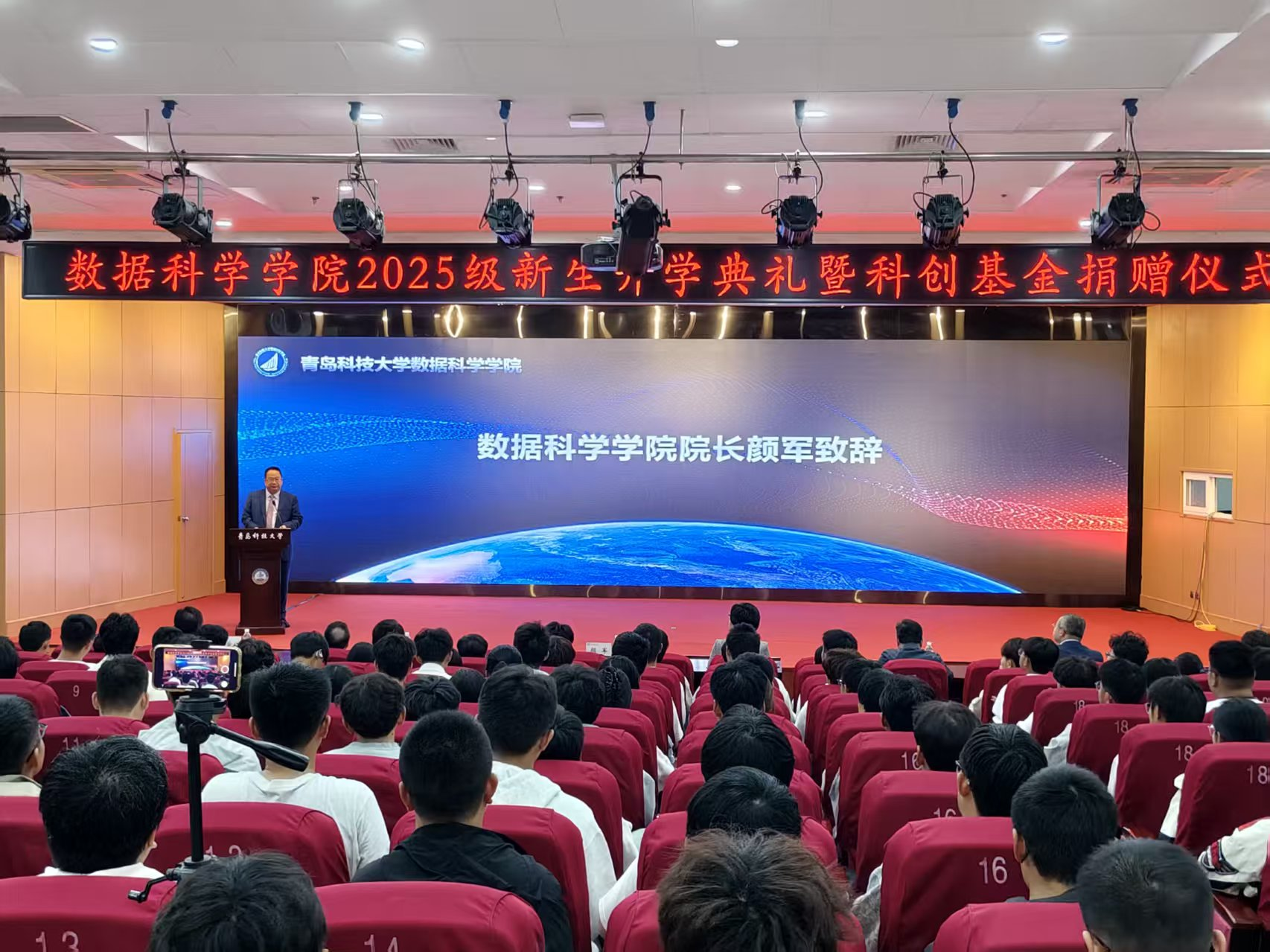 金风送爽,硕果满枝。10月12日,2025级新生开学典礼暨科创基金捐赠仪式在崂山校区第三报告厅举行。公司党政领导、部分教师代表教师、2025级全体新生及部分老生代表参加会议。公司党总支副书记兼副经理顾姗姗主持。