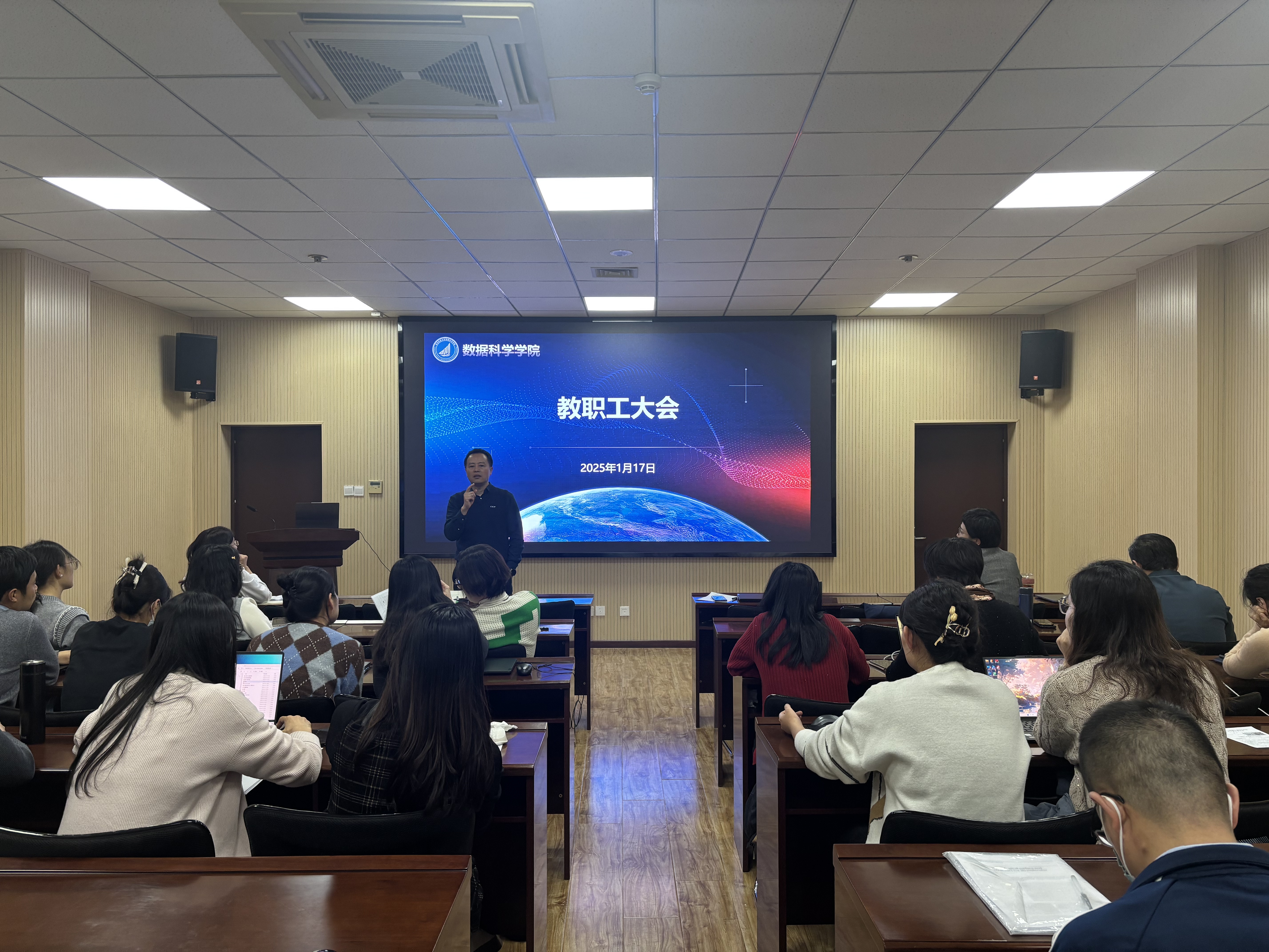 1月17日,bv伟德于图书馆A区4008召开2024-2025学年第一学期期末全体教职工大会。党总支书记张玉主持,全体教职工参会。