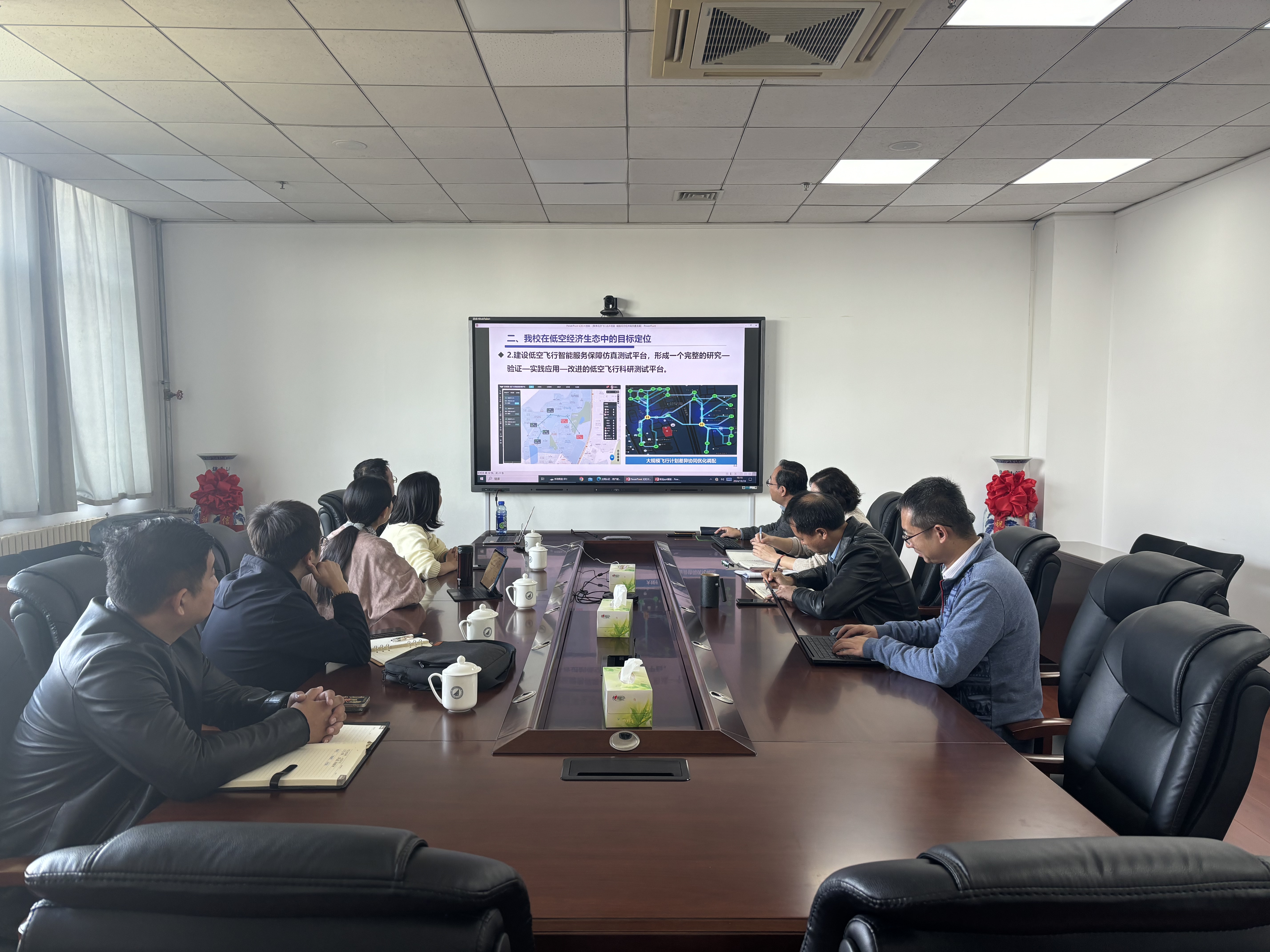 会上,杜军威欢迎刘冰一行的到来并介绍了公司低空飞行和AI for science方面的工作。他希望未来公司能在科学研究、项目合作、员工培养等方面有更深入的交流。
