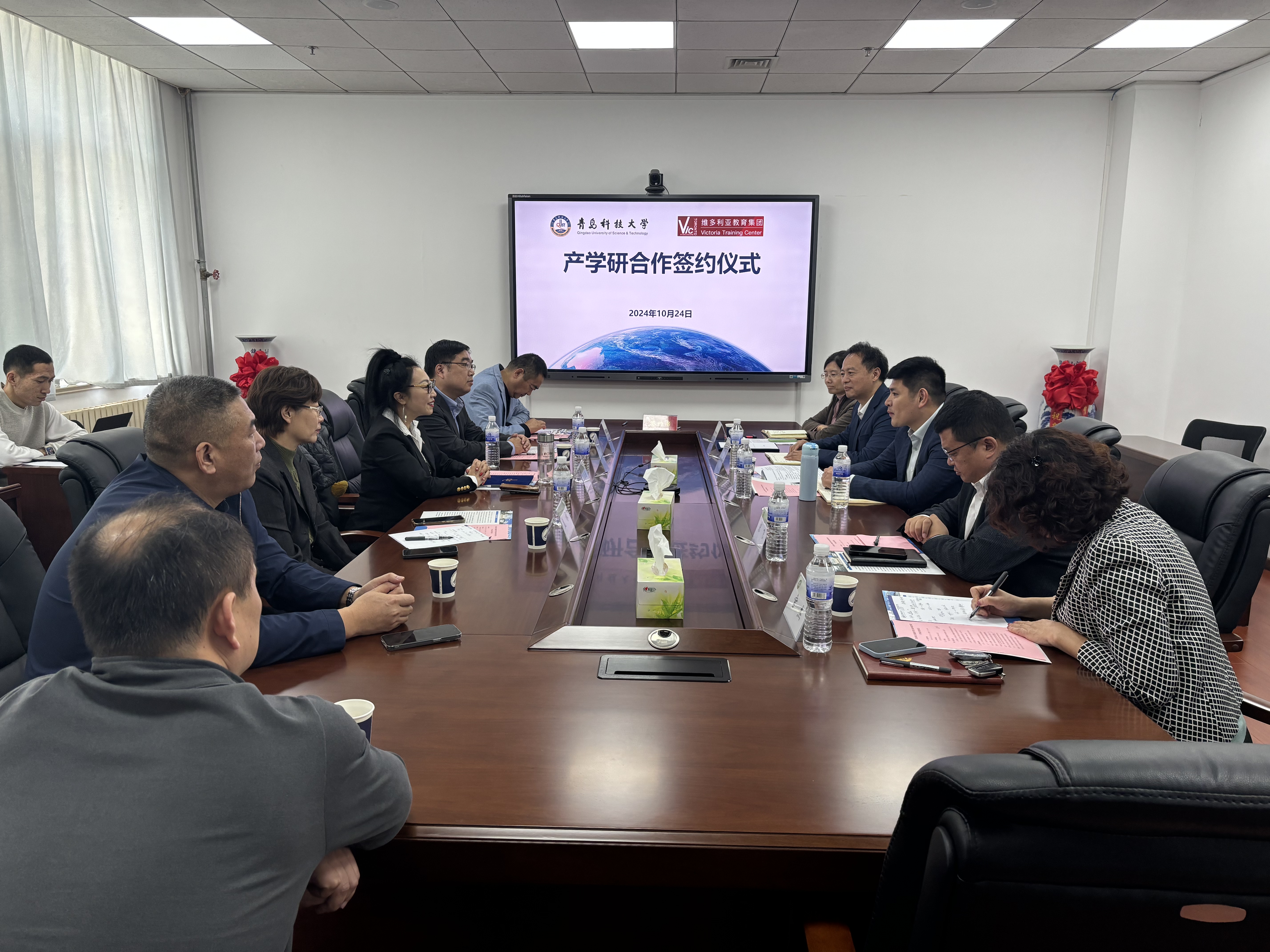 10月24日,bv伟德与维多利亚教育集团产学研合作签约仪式在图书馆A区5004会议室举行。加拿大维多利亚教育集团董事长Maria(孙善勤)、北京加维克教育科技有限公司总裁贾英杰、公司合作发展处处长王帅,国际交流与合作处副处长宋飞,bv伟德常务副经理杜军威、副经理张淑军参加签约仪式。