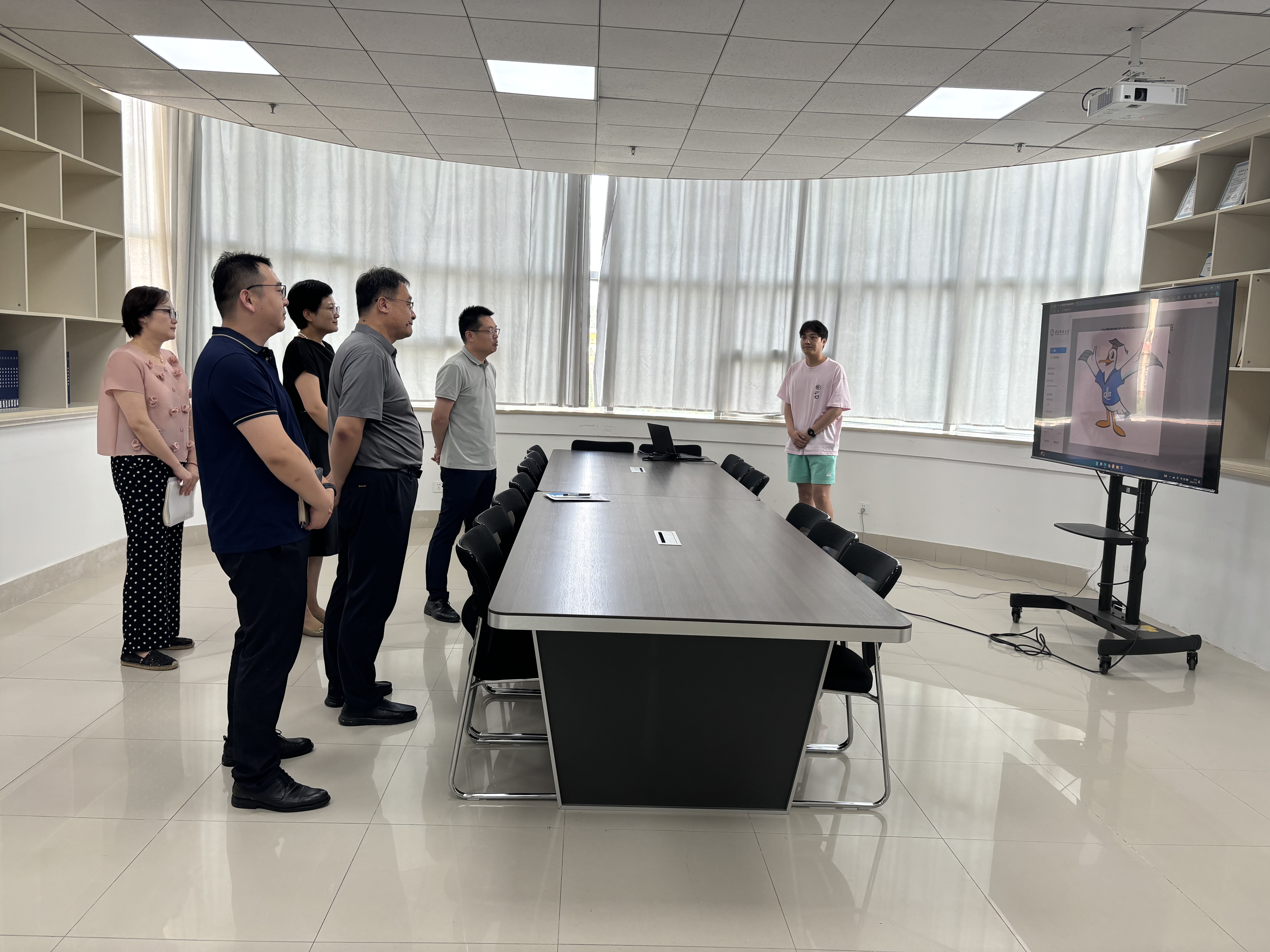 会前,领导们共同观摩了公司人工智能专业员工研发交互式大模型“小海燕”。