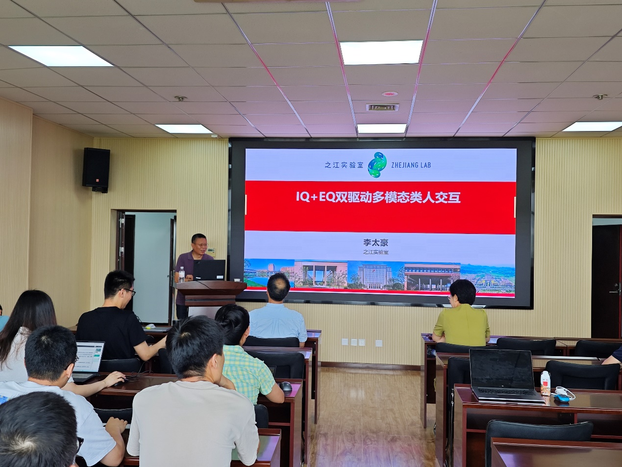 讲座中,李太豪介绍了之江实验室多模态情感计算组的基本情况和特色,阐述了情感理论建模、情感计算概念、发展沿革以及当前存在的问题,分享了实验室在跨模态内容生成方面所做的工作,并展示了集成视觉生成、音乐生成、作诗等功能的跨模态类人共情交互系统,可应用于各种AI分析理解、智能对话、心理安抚、家庭陪伴等场景。