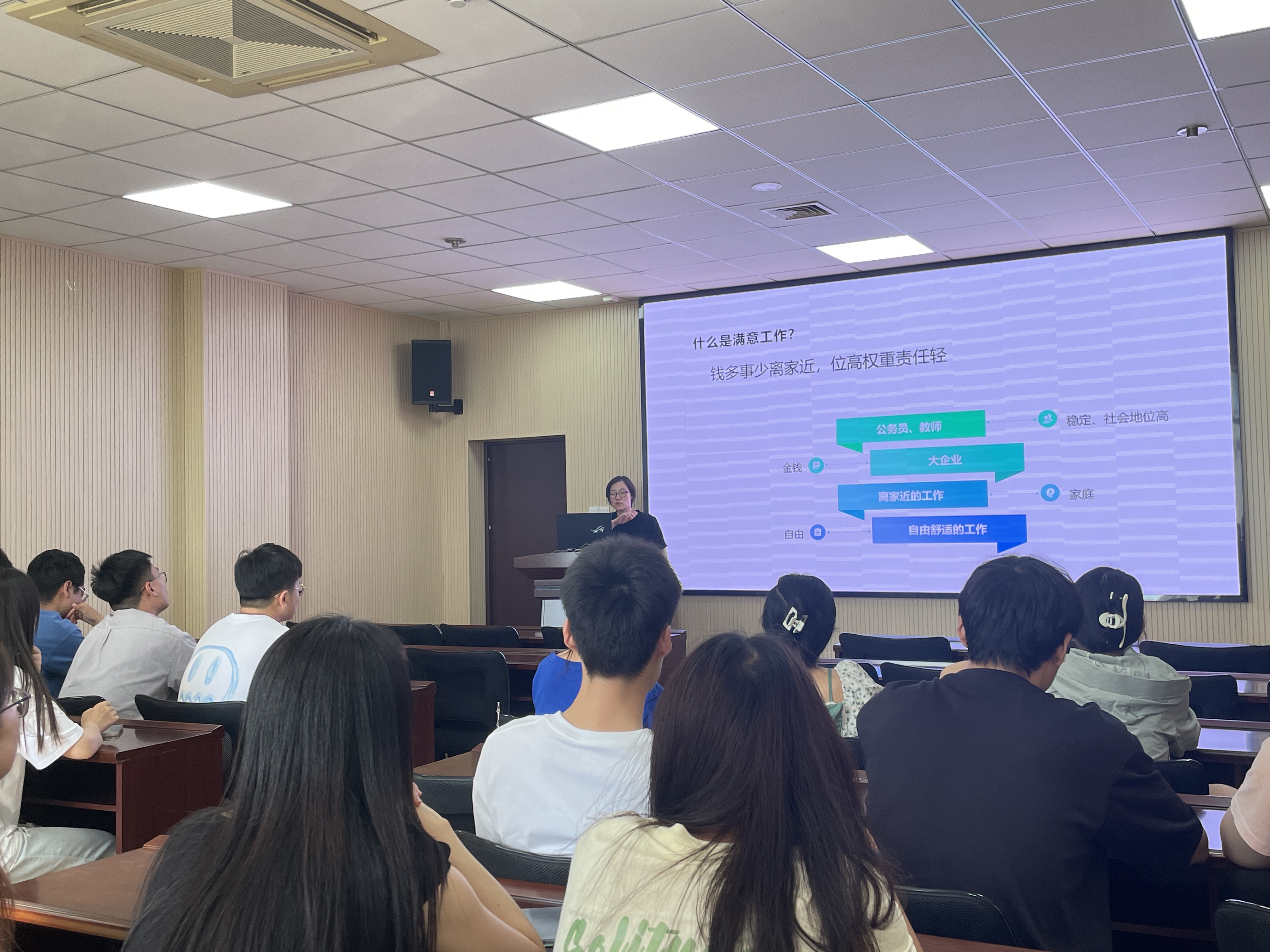会上,顾姗姗对2025届研究生进行了一次生涯规划调研,深入了解同学们对未来职业路径的思考和规划,并通过对2024届研究生的毕业去向和常见就业问题的分析,提供了关于毕业规划和就业选择的专业指导。