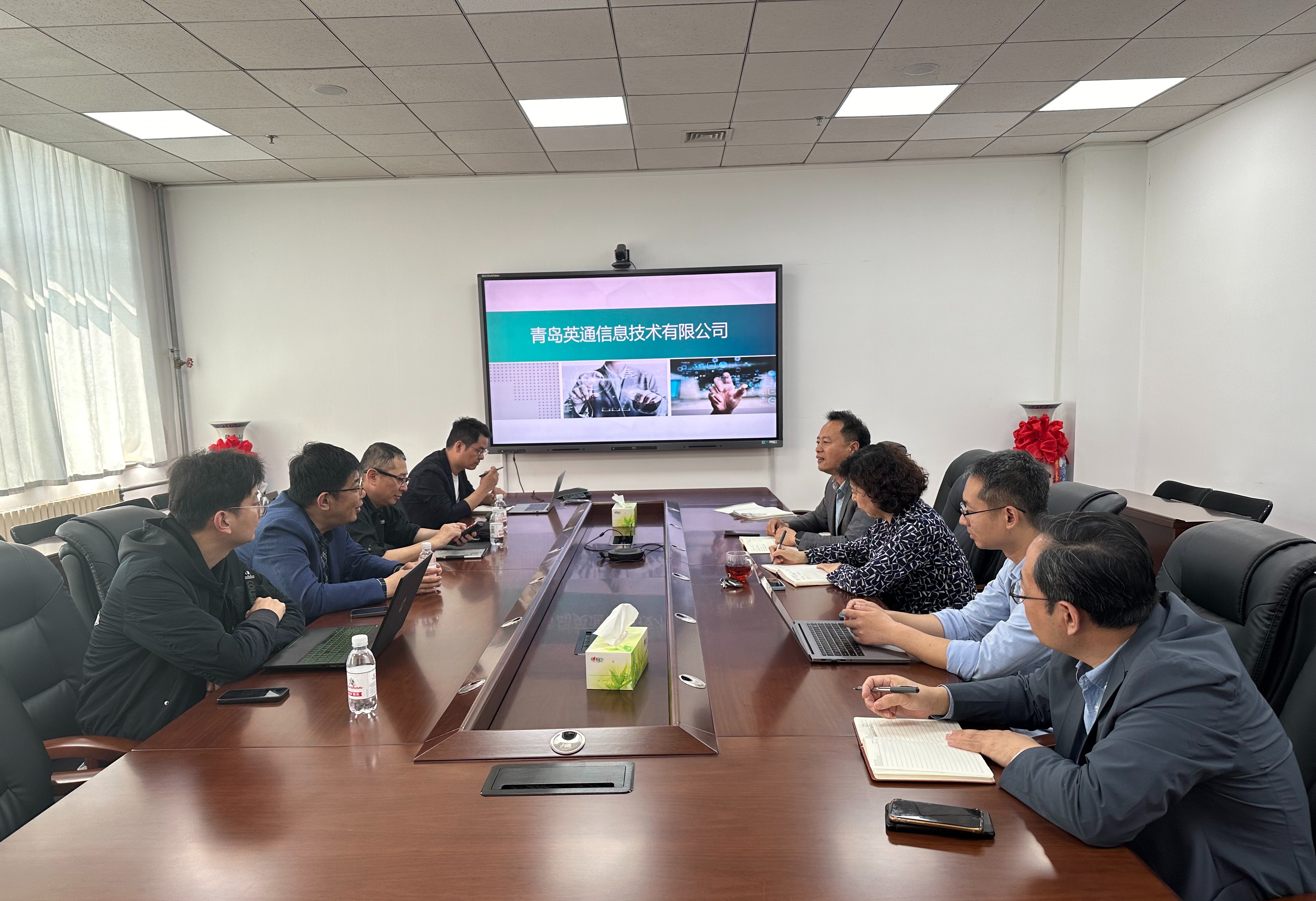 杜军威对刘鹏一行的到来表示欢迎,并介绍了公司的基本情况和科研力量。他表示,青岛英通信息技术有限公司的需求和公司学科专业发展非常契合,期待双方加强合作,共同推动创新人才联合培养、科技成果转化和产业化。