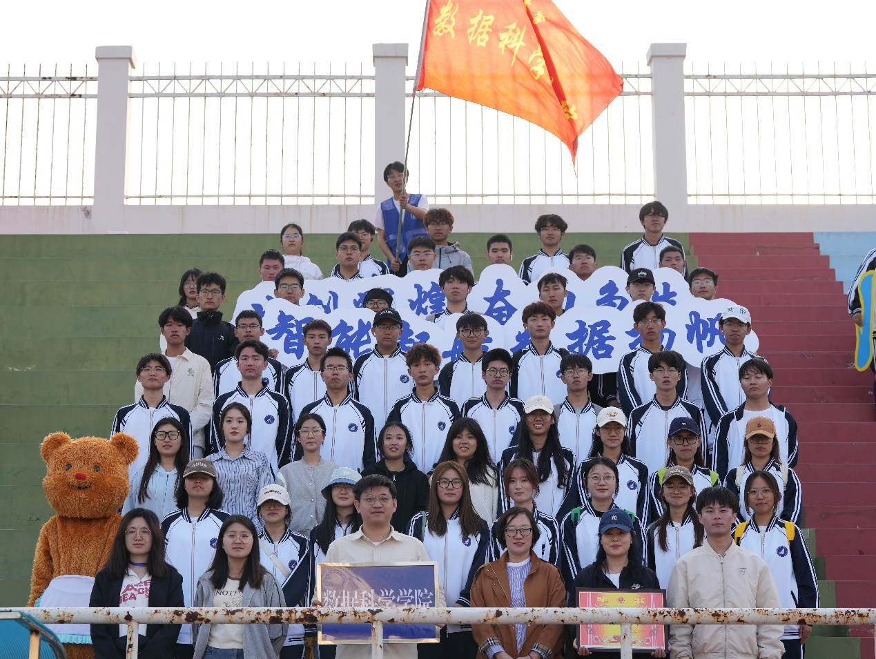 运动会的开幕式上,bv伟德方队的同学们精神抖擞,神采奕奕,步伐铿锵有力。“数据扬帆,智能起航;奋力争先,共创辉煌”,高亢激昂的口号充分展现了数科学子朝气蓬勃的精神风貌和积极向上的竞技精神。方队中的卫星模型不仅体现了公司的专业特色,更象征着数科学子对科技的追求与梦想。手中的国旗随风飘扬,彰显了他们的爱国情怀和强烈的集体荣誉感。