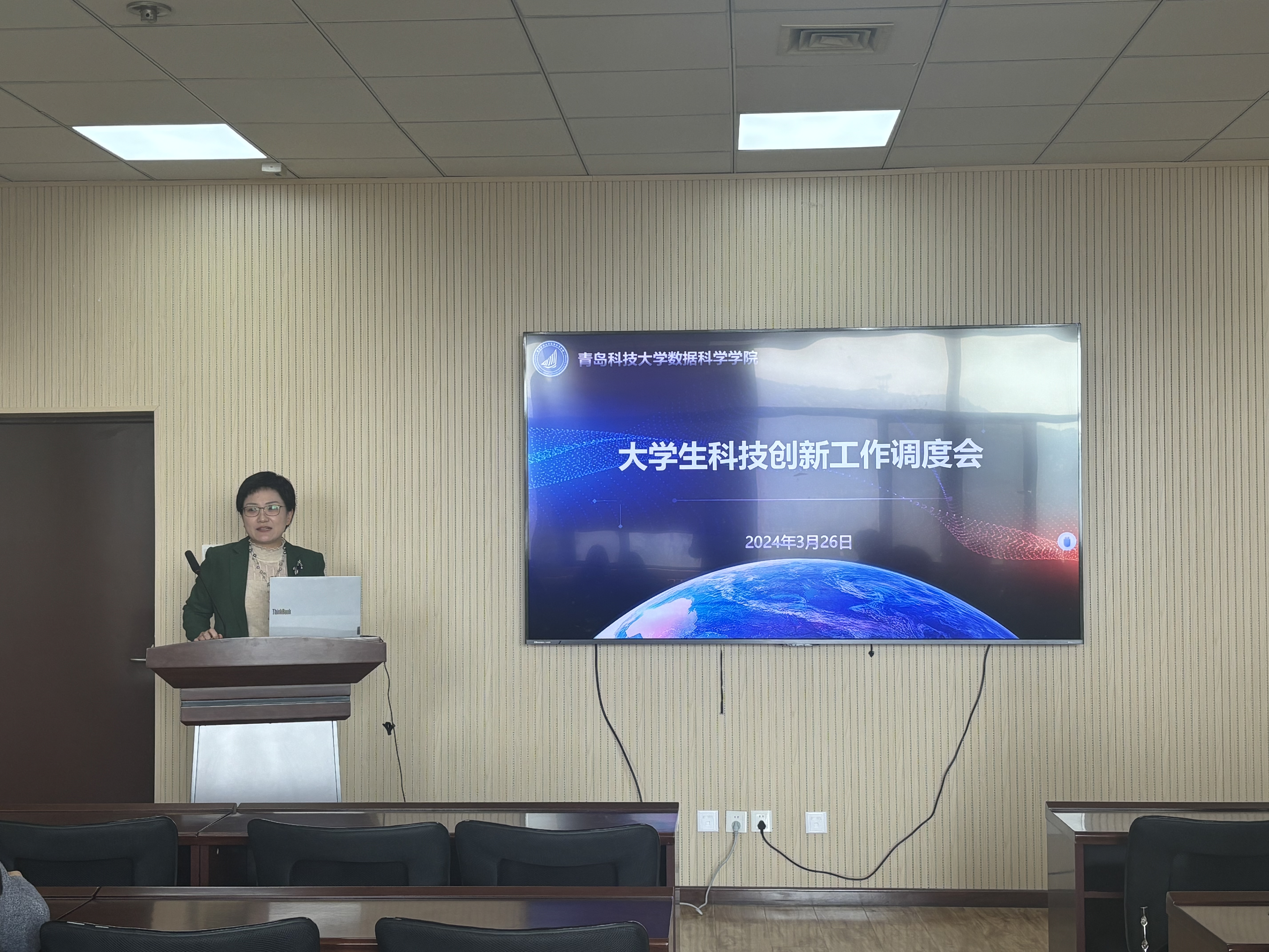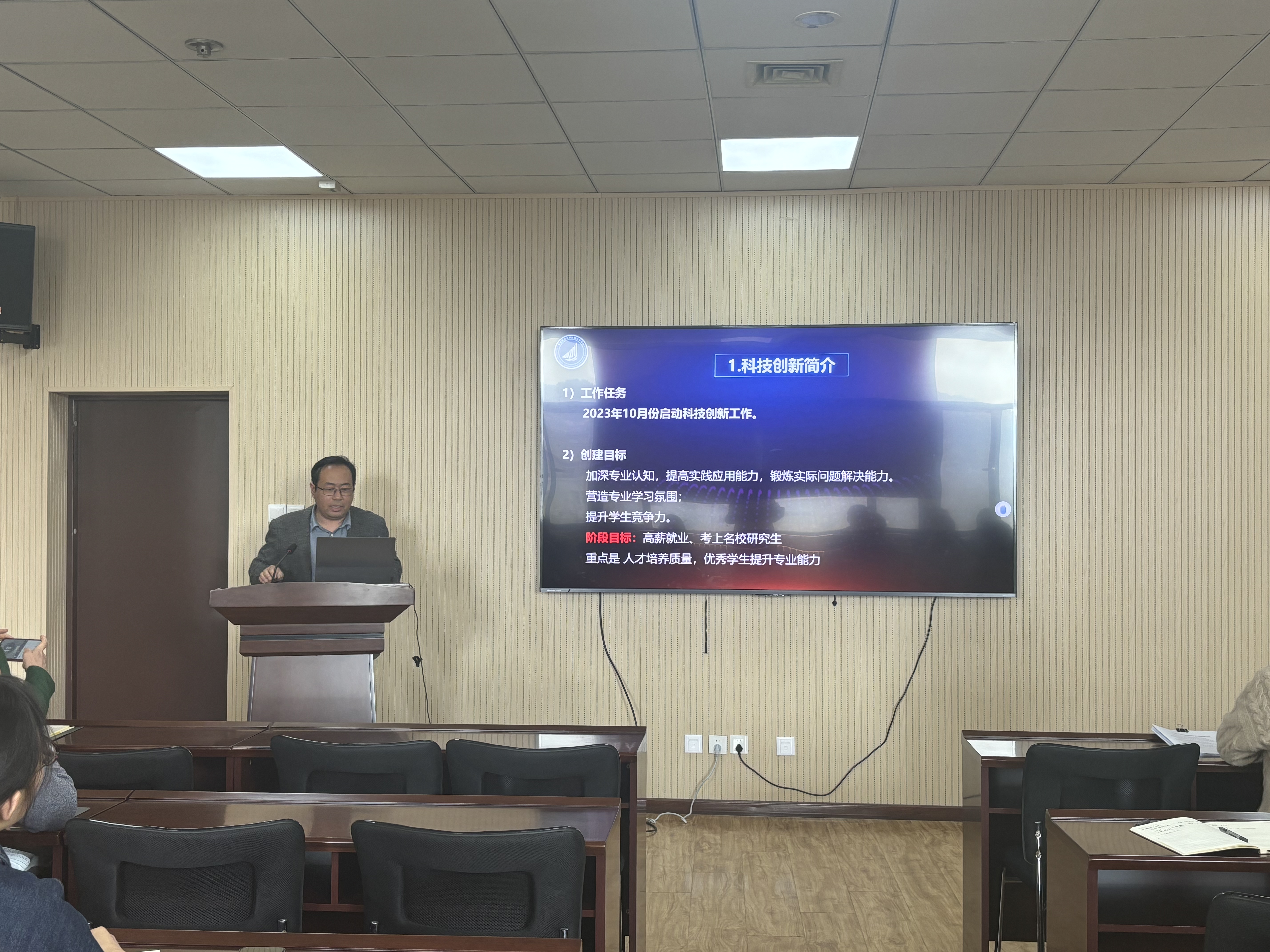 辅导员姜国华对学科竞赛的具体内容、参赛要求和注意事项进行了介绍,从队伍梯队化、结构健康化、项目多样化方面介绍了员工科创队伍建设。