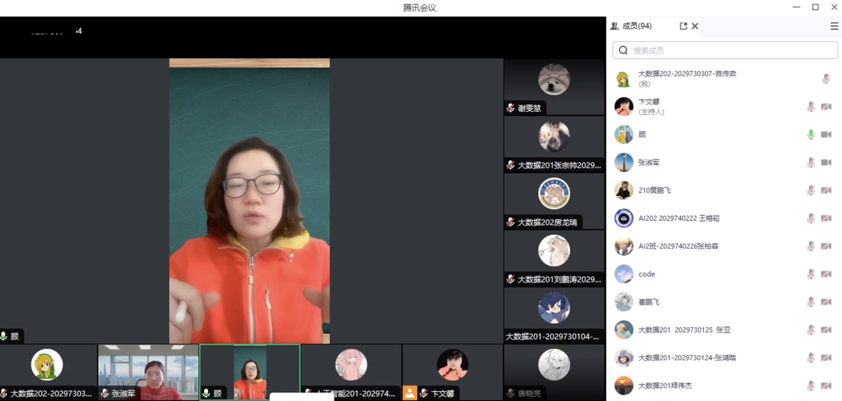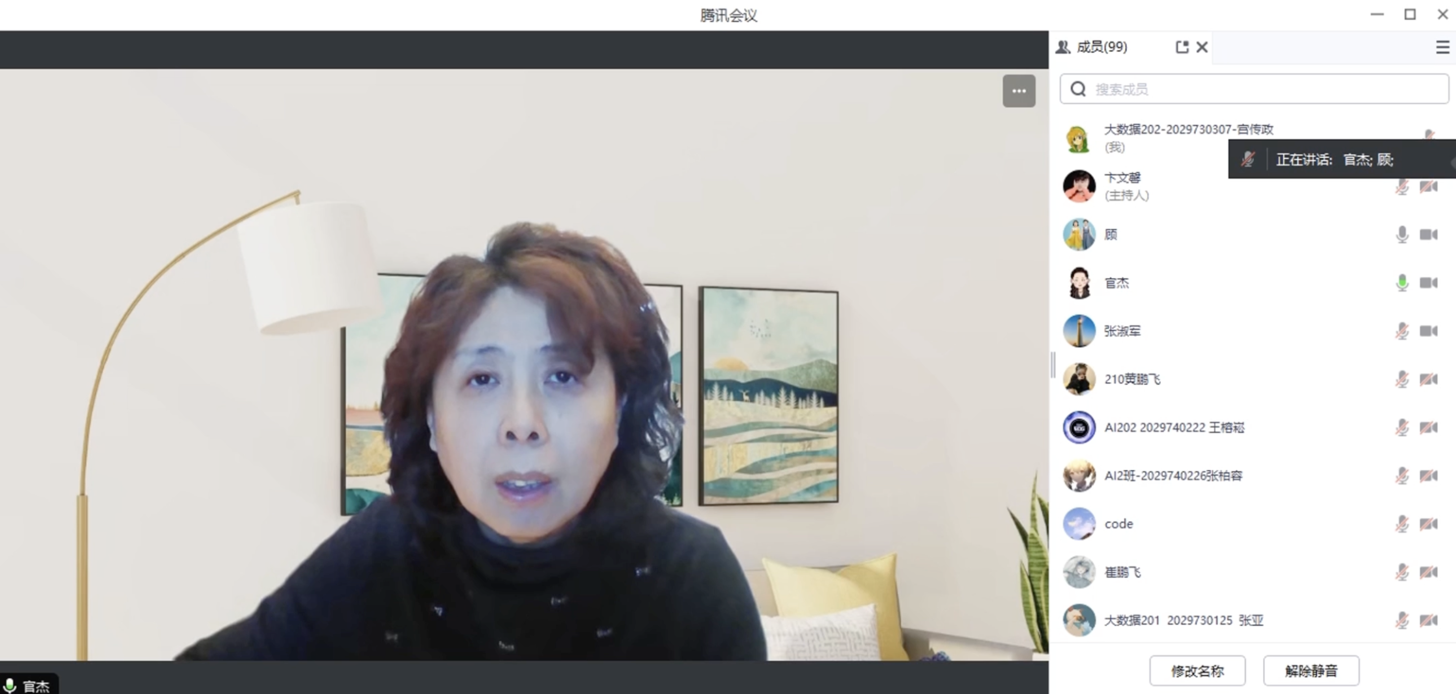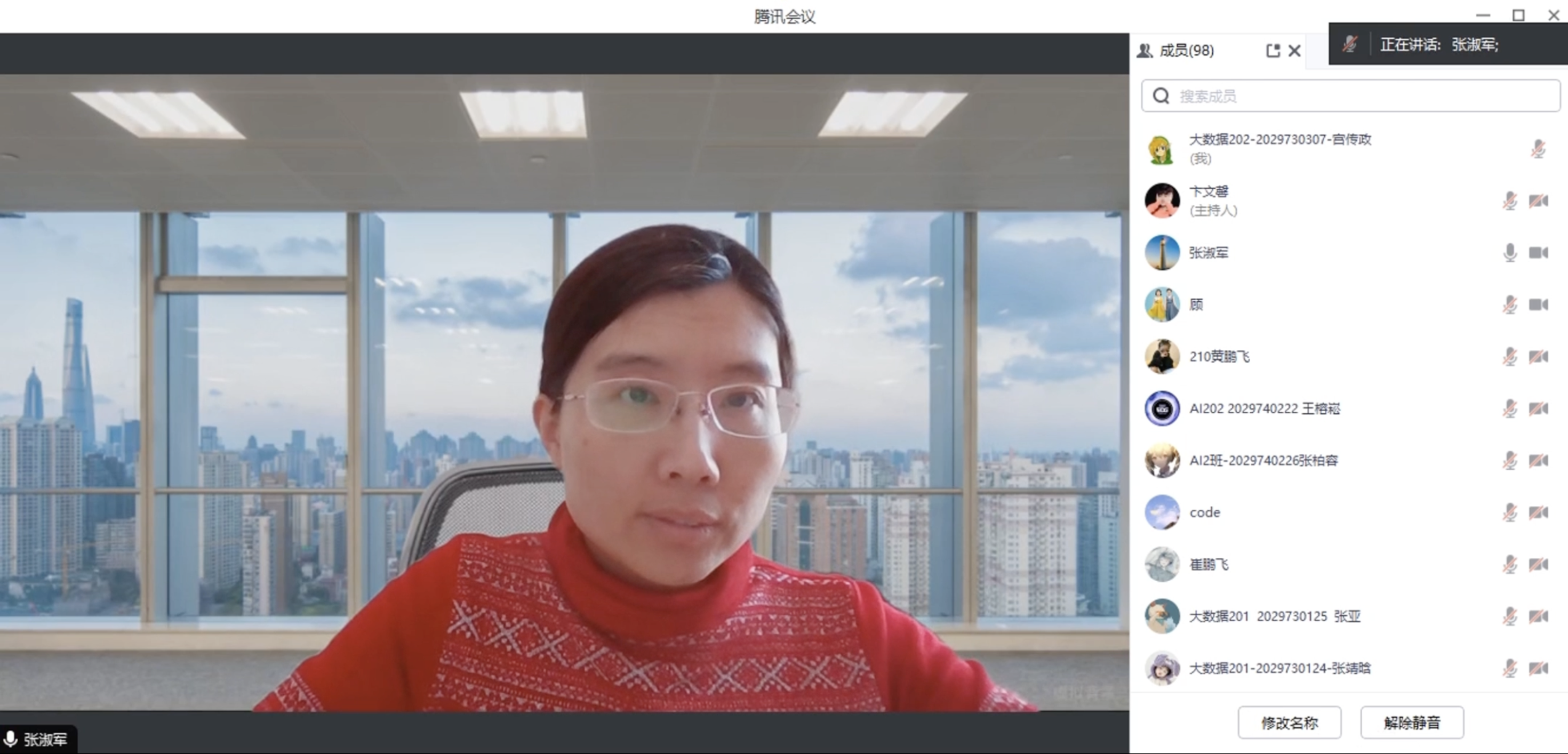 张淑军针对人工智能、大数据两个专业提出了就业能力提升建议,讲述了平台类、数据工程类、应用模型构建等不同类别的岗位需求和技能要求,鼓励员工广泛了解、主动学习,根据岗位需求完善修改简历。同时,张淑军讲解了本科最后一学期的学习安排和毕业要求。